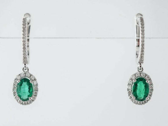 2.5ct Oval Green Emerald Diamond Halo Drop Dangle Earrings 14k White Gold Finish
