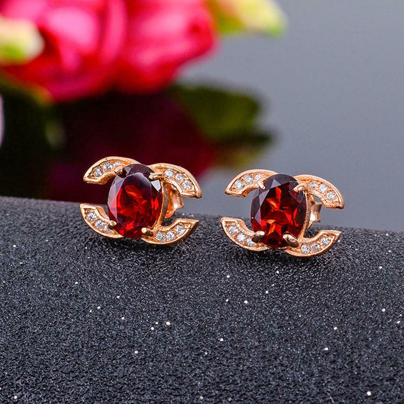1.5ct Oval Cut Red Garnet Logo Stud Women Earrings 14k Rose Gold Finish