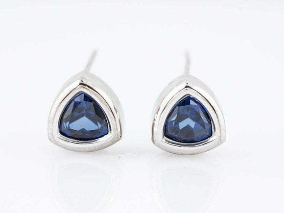 1.2ct Trillion Cut Blue Sapphire Solitaire Stud Earrings 14k White Gold Finish