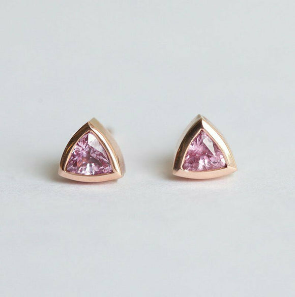 2ct Trillion Cut Pink Sapphire Bezel Solitaire Stud Earrings 14k RoseGold Finish
