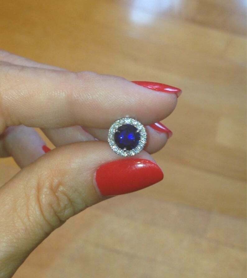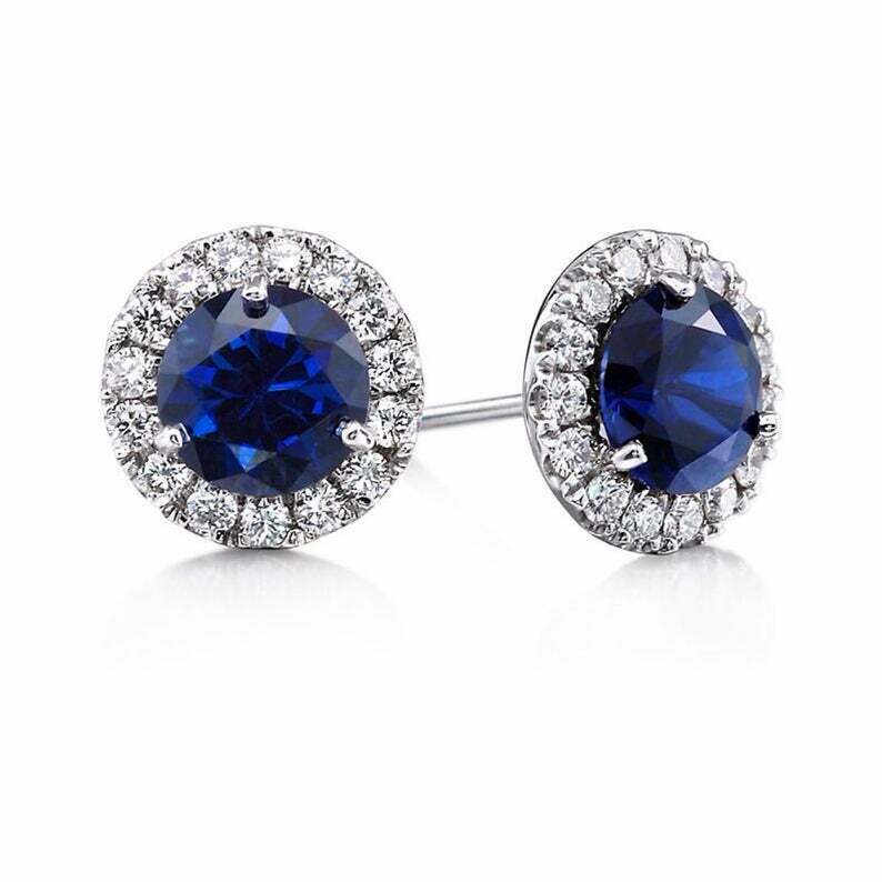 0.44ct Round Cut Blue Sapphire Diamond Halo Stud Earrings 14k White Gold Finish
