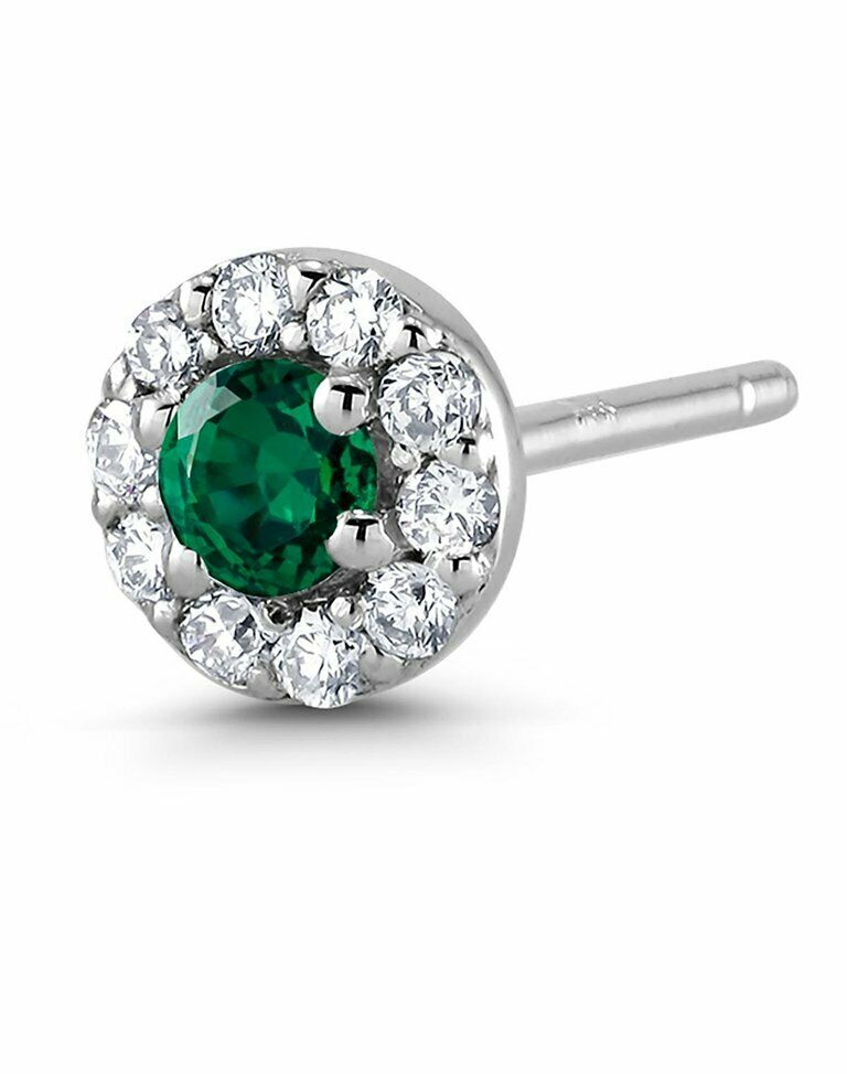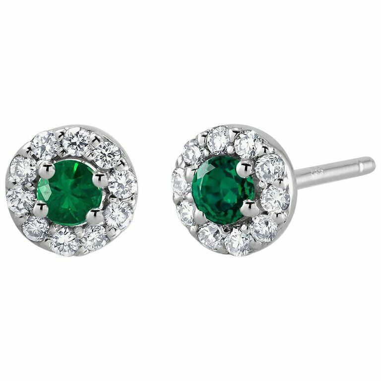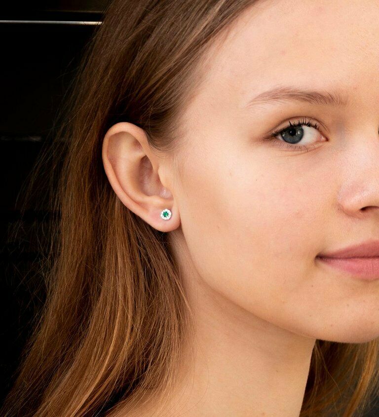 0.47ct Round Cut Green Emerald Halo Diamond Stud Earrings 14k White Gold Finish