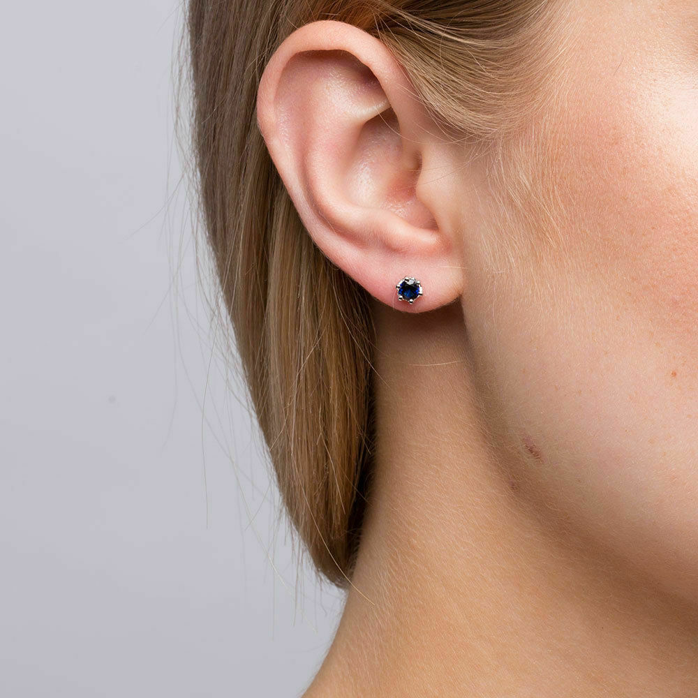 0.4ct Round Cut Blue Sapphire Solitaire Stud Earrings 14k White Gold Finish New