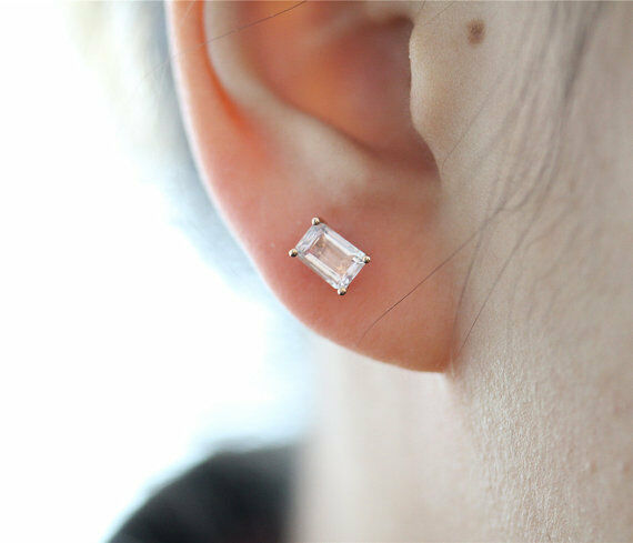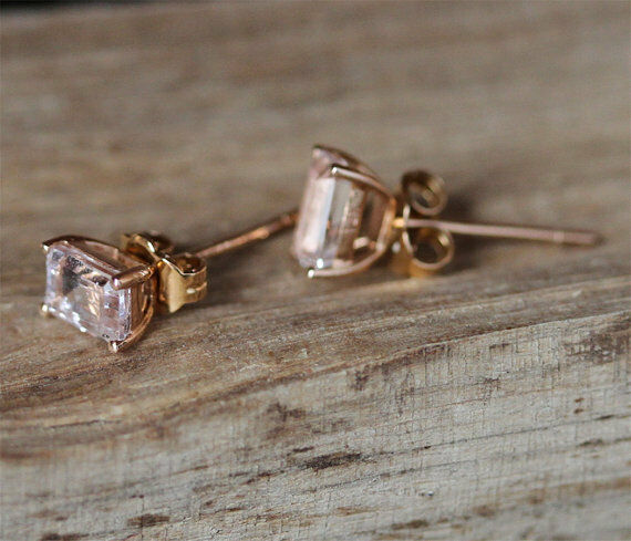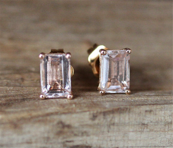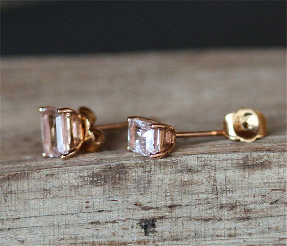 0.5ct Emerald Cut Morganite Classic Stud Earrings Women 14k Yellow Gold Finish