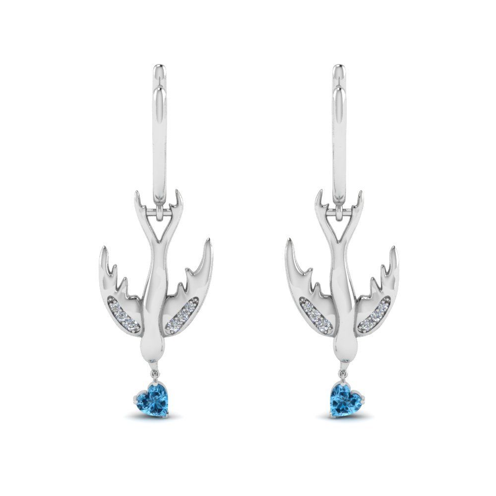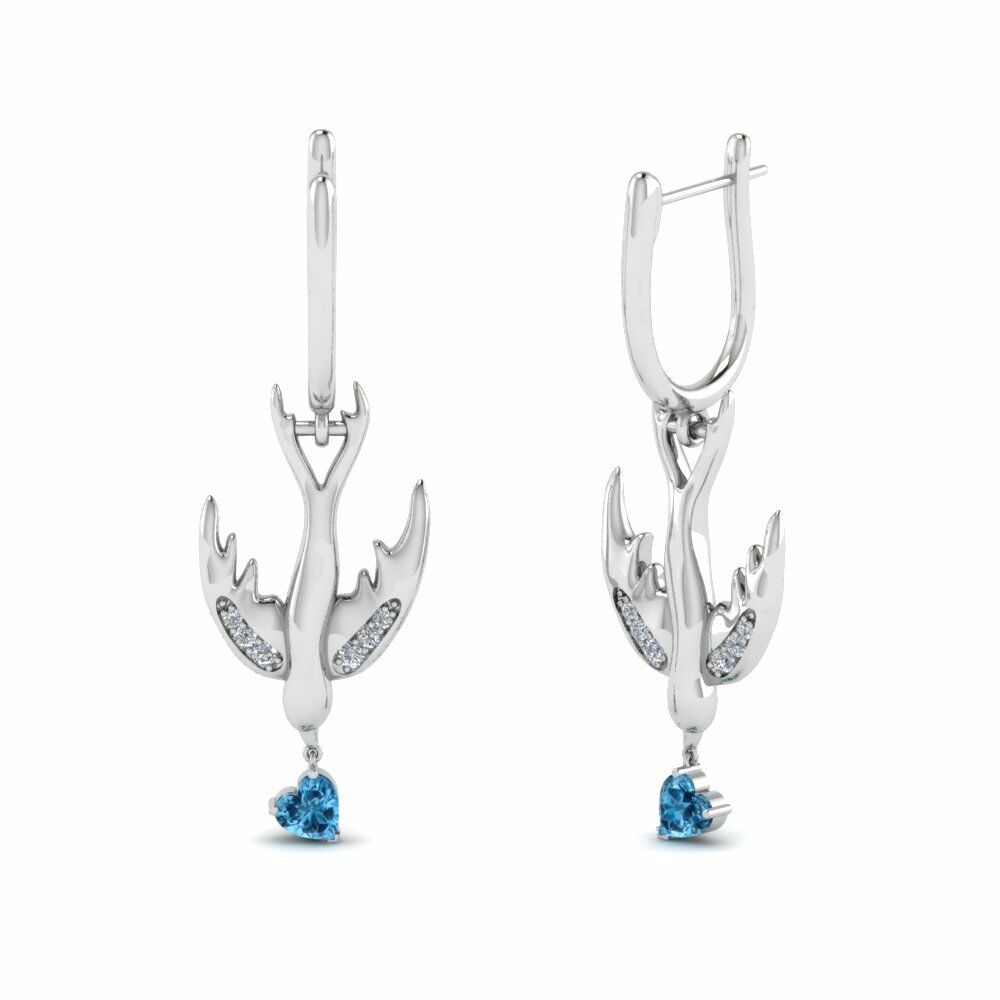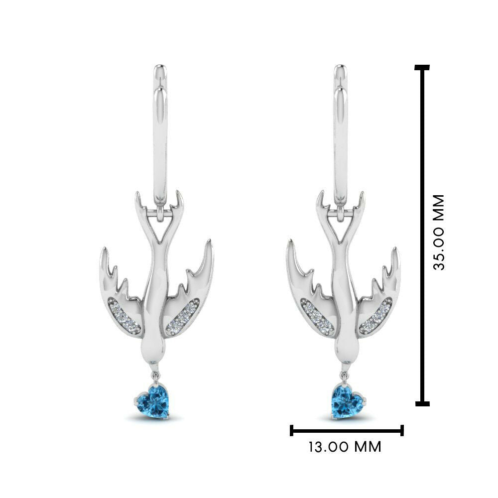 0.5ct Heart Cut Blue Sapphire Fly Bird Stud Earring Women 14k White Gold Finish