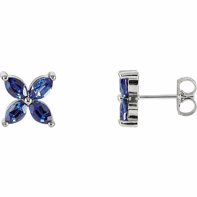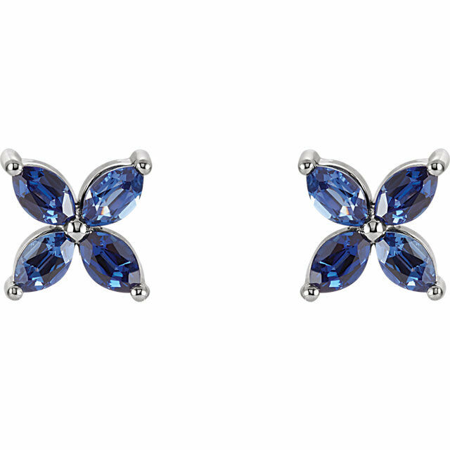 0.5ct Marquise Cut Blue Sapphire Flower Stud Earring Women 14k White Gold Finish