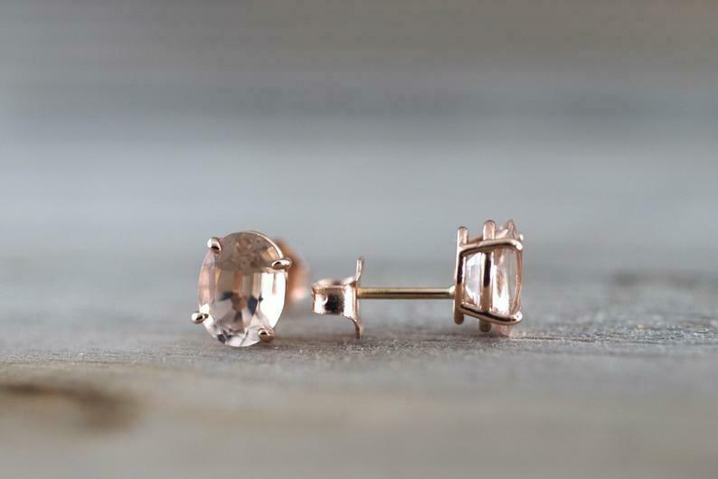 0.5ct Oval Cut Peach Morganite Solitaire Stud Earrings 14k Rose Gold Finish