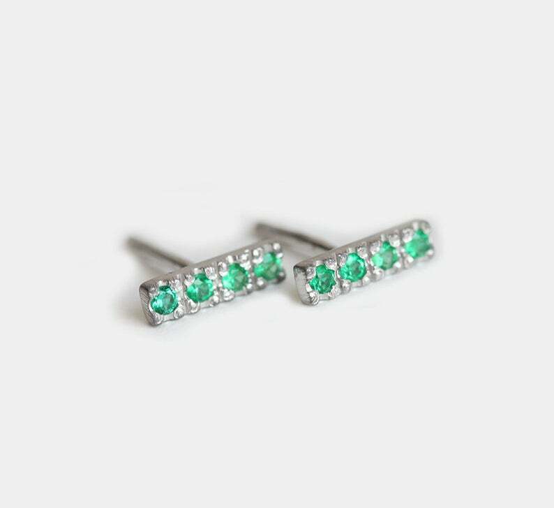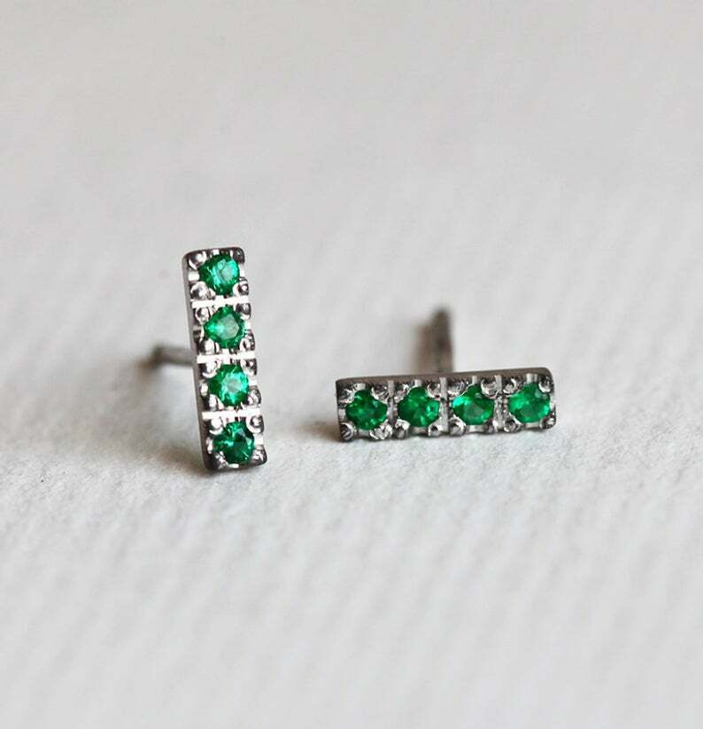 0.5ct Round Cut Green Emerald Vertical Bar Stud Earrings 14k White Gold Finish