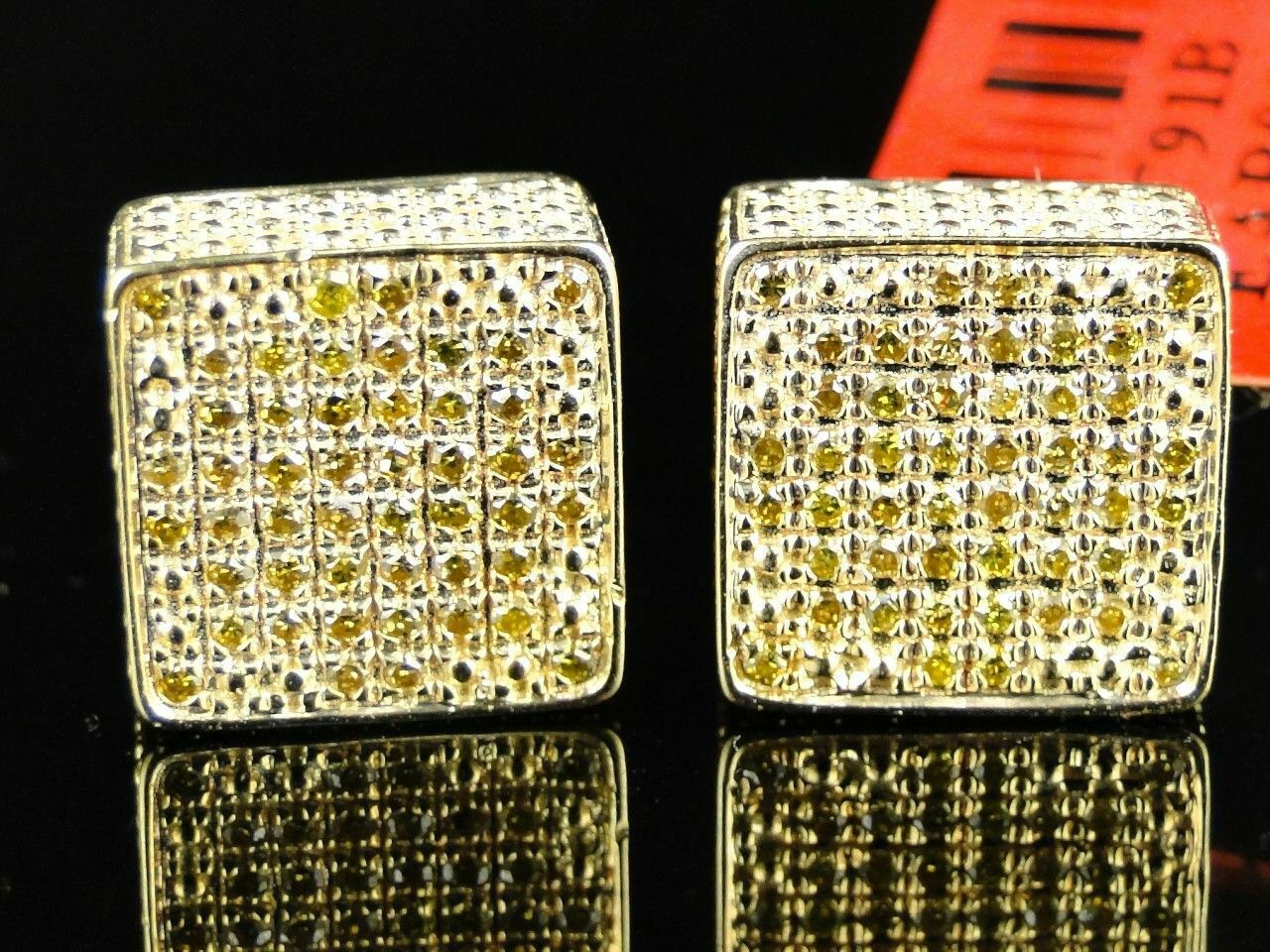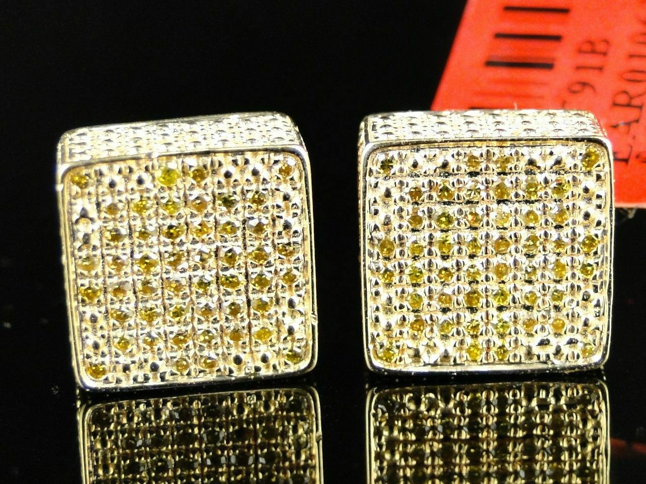 0.5ct Round Cut Yellow Sapphire Square Cluster Stud Earrings 14k YellowGold Over