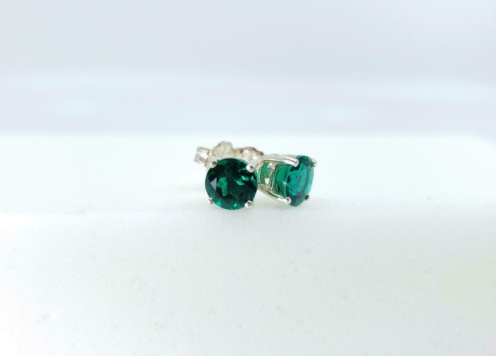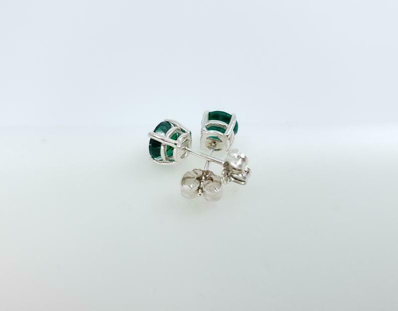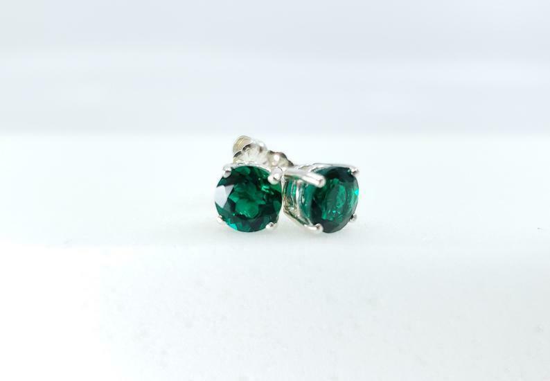 0.5ct Stud Earrings Round Cut Green Emerald Solitaire Design 14k White Gold Over