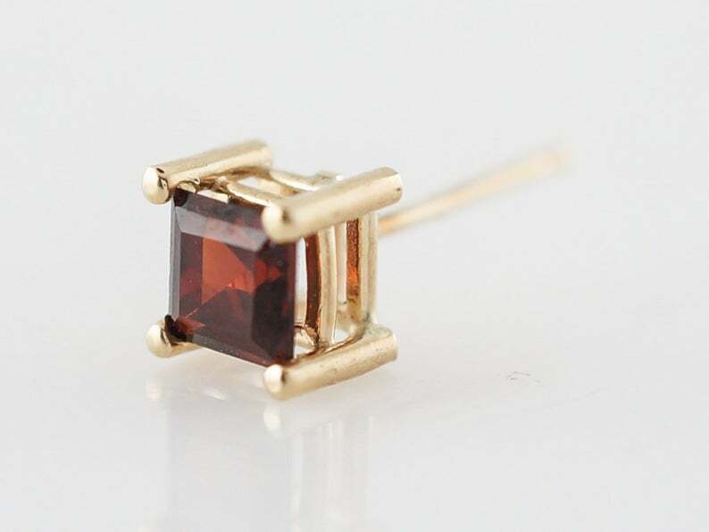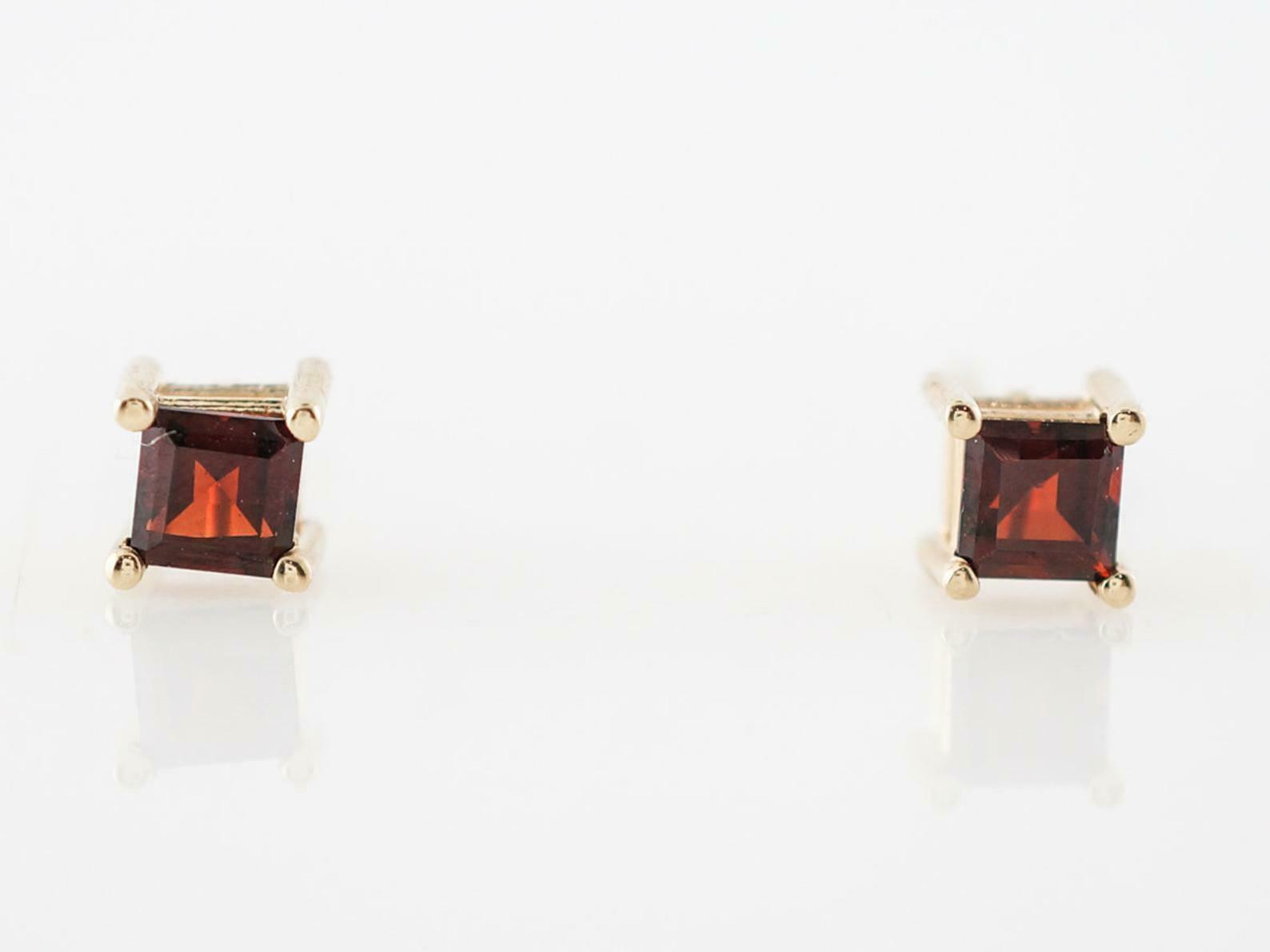 0.6ct Princess Cut Red Garnet Solitaire Stud Earrings 14k Yellow Gold Finish