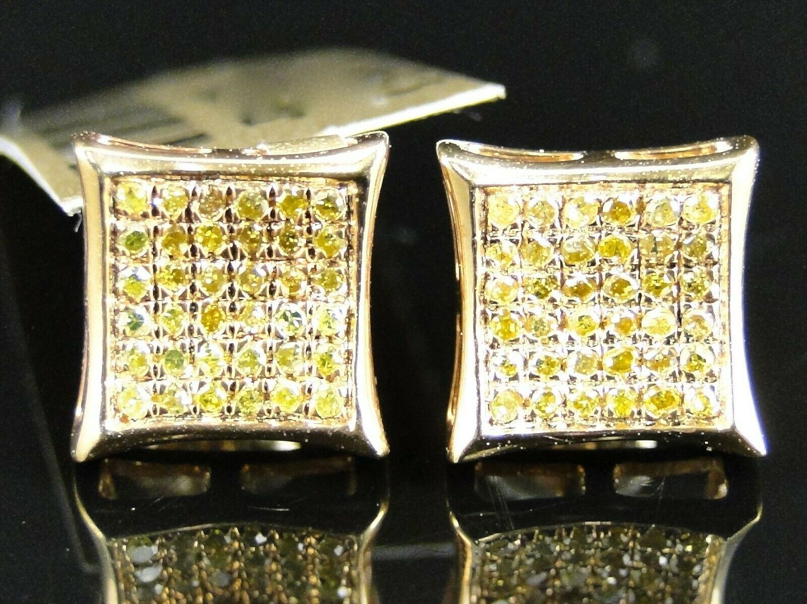 0.75ct Round Cut Yellow Sapphire Square Cluster Stud Earrings 14k Yellow Gold Finish