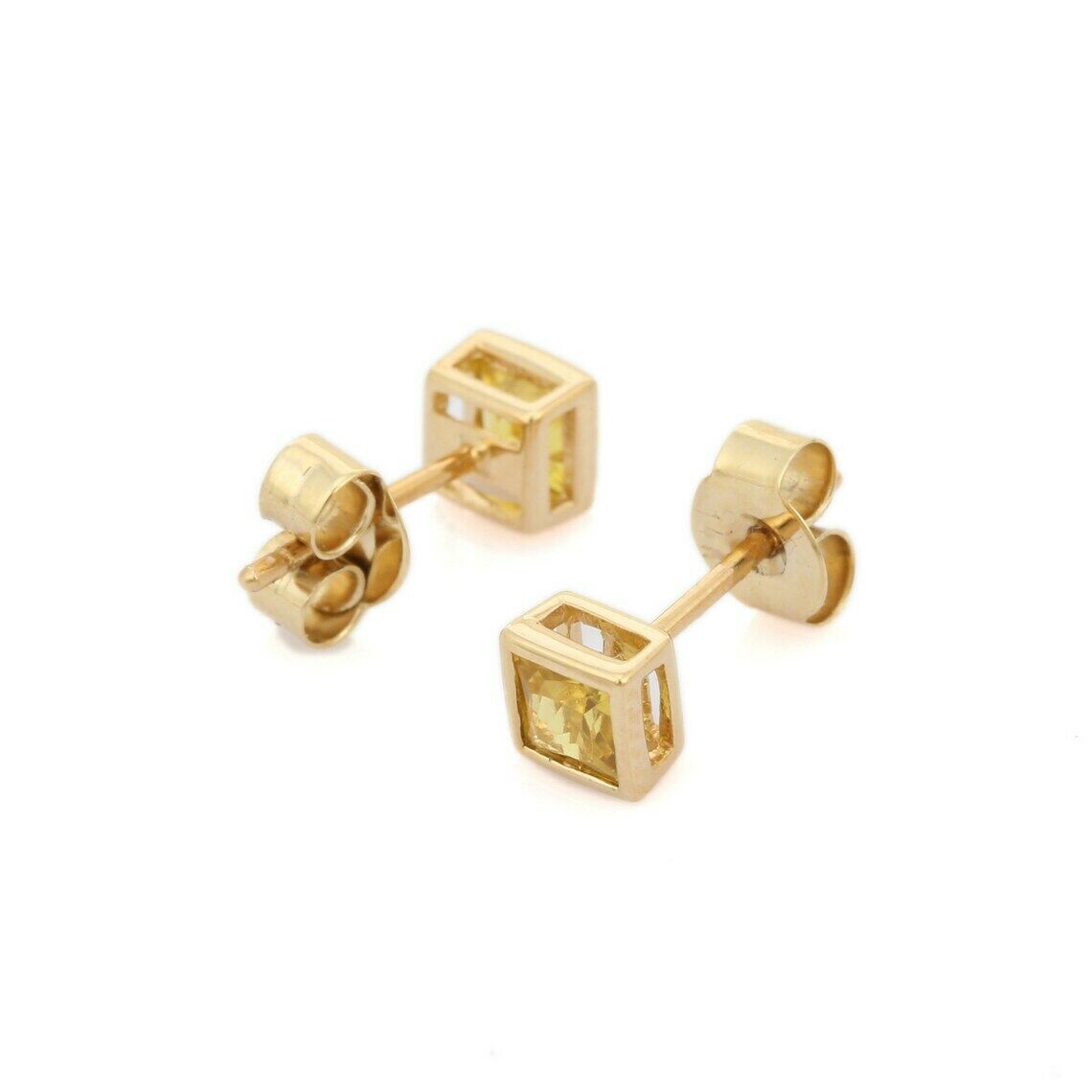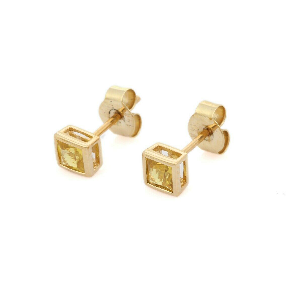 0.7ct Stud Earrings Princess Cut Yellow Sapphire Bezel Set 14k Yellow Gold Over
