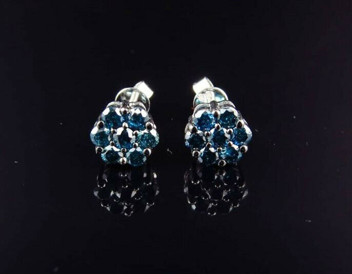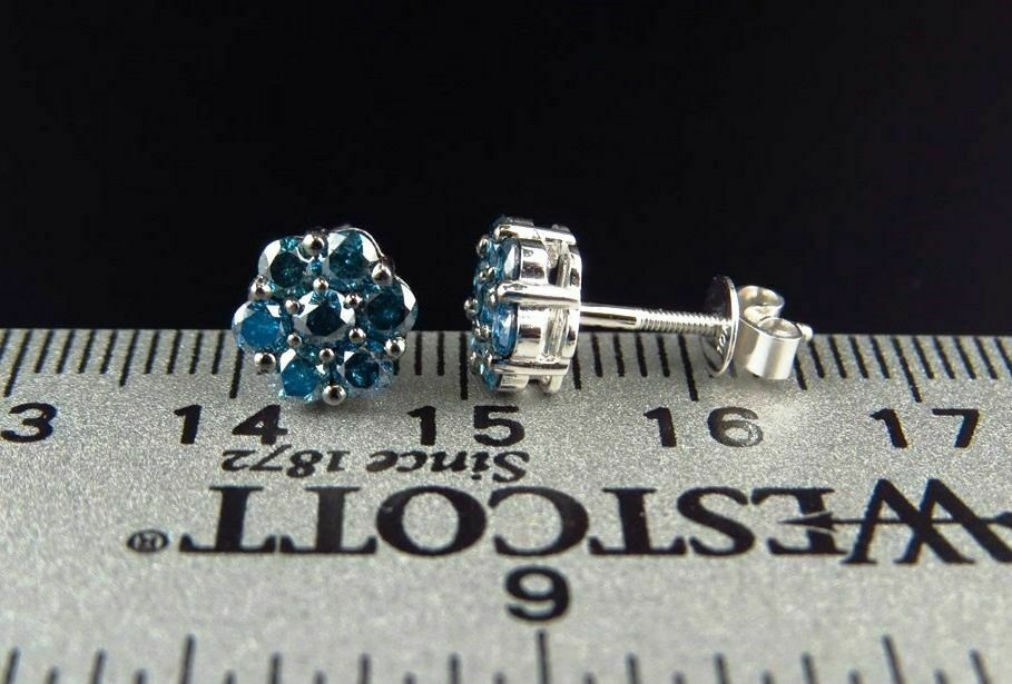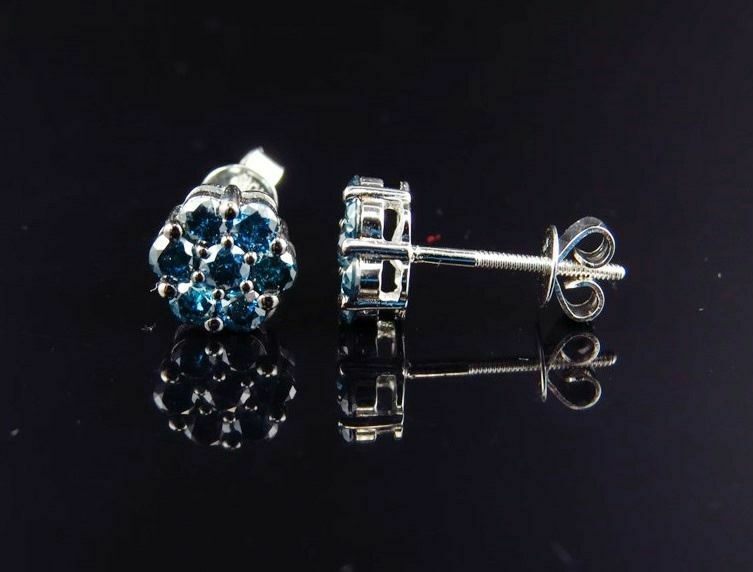 1.03ct Round Cut Blue Sapphire Flower Stud Earrings Women 14k White Gold Finish