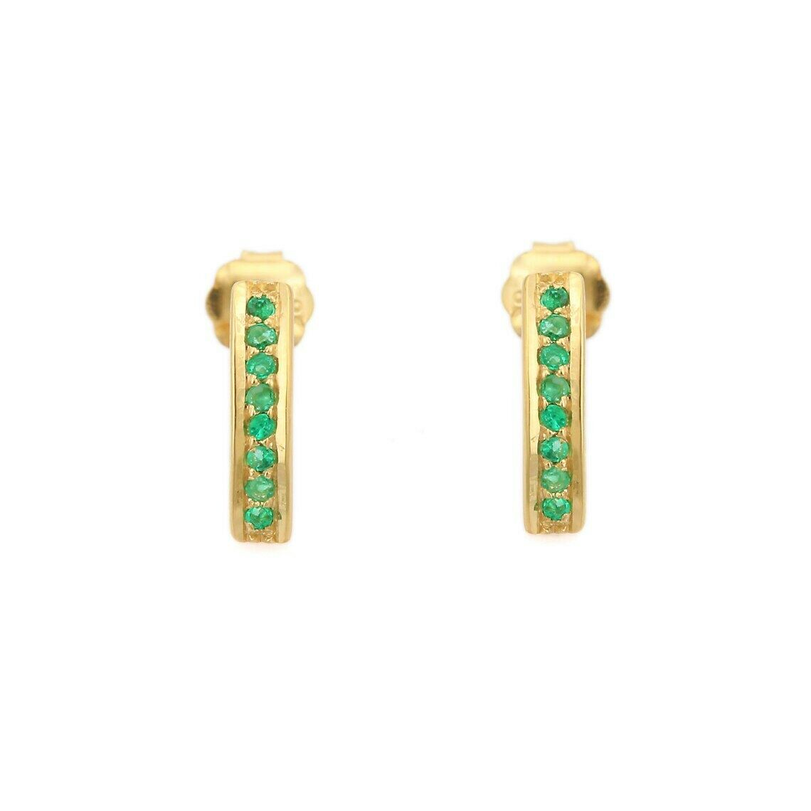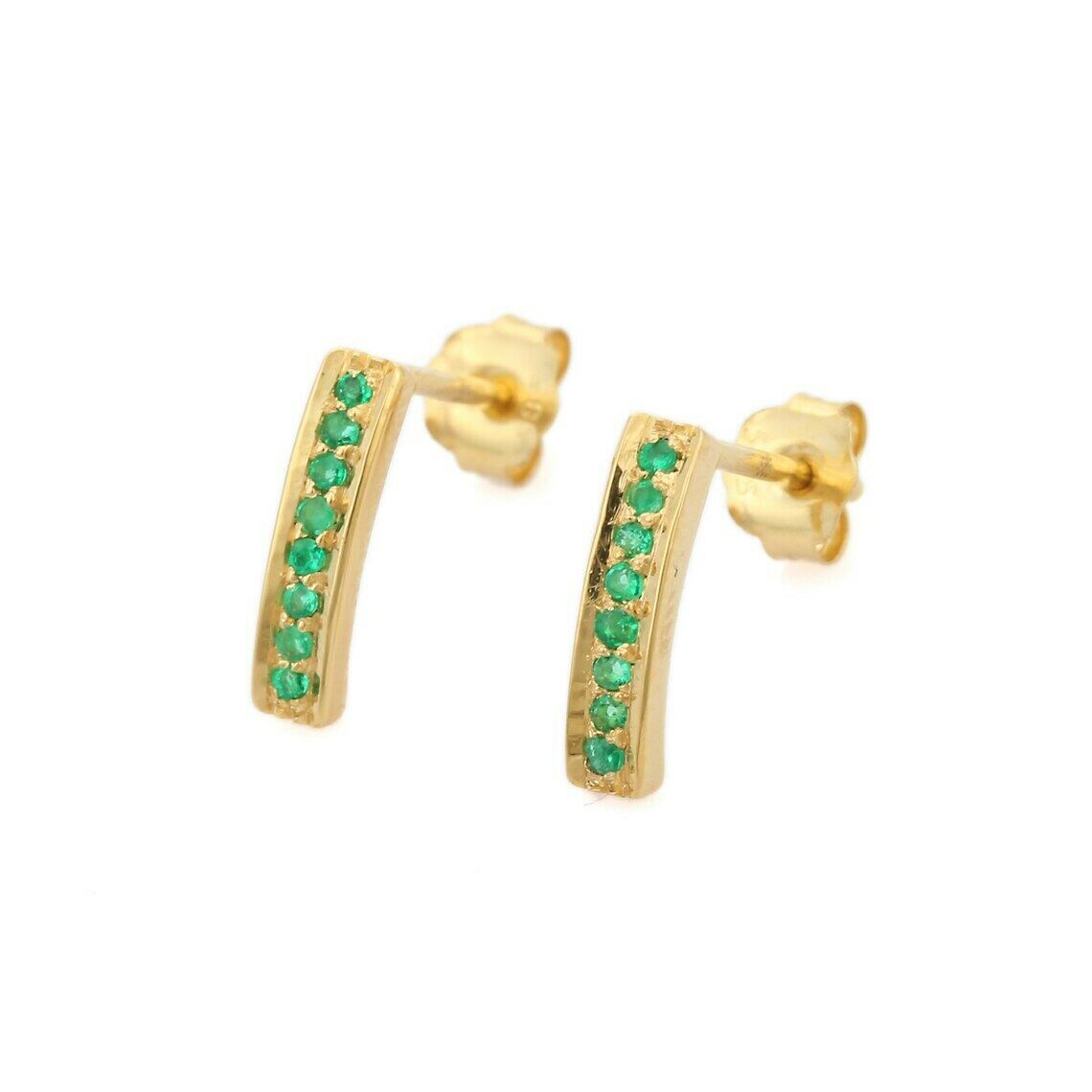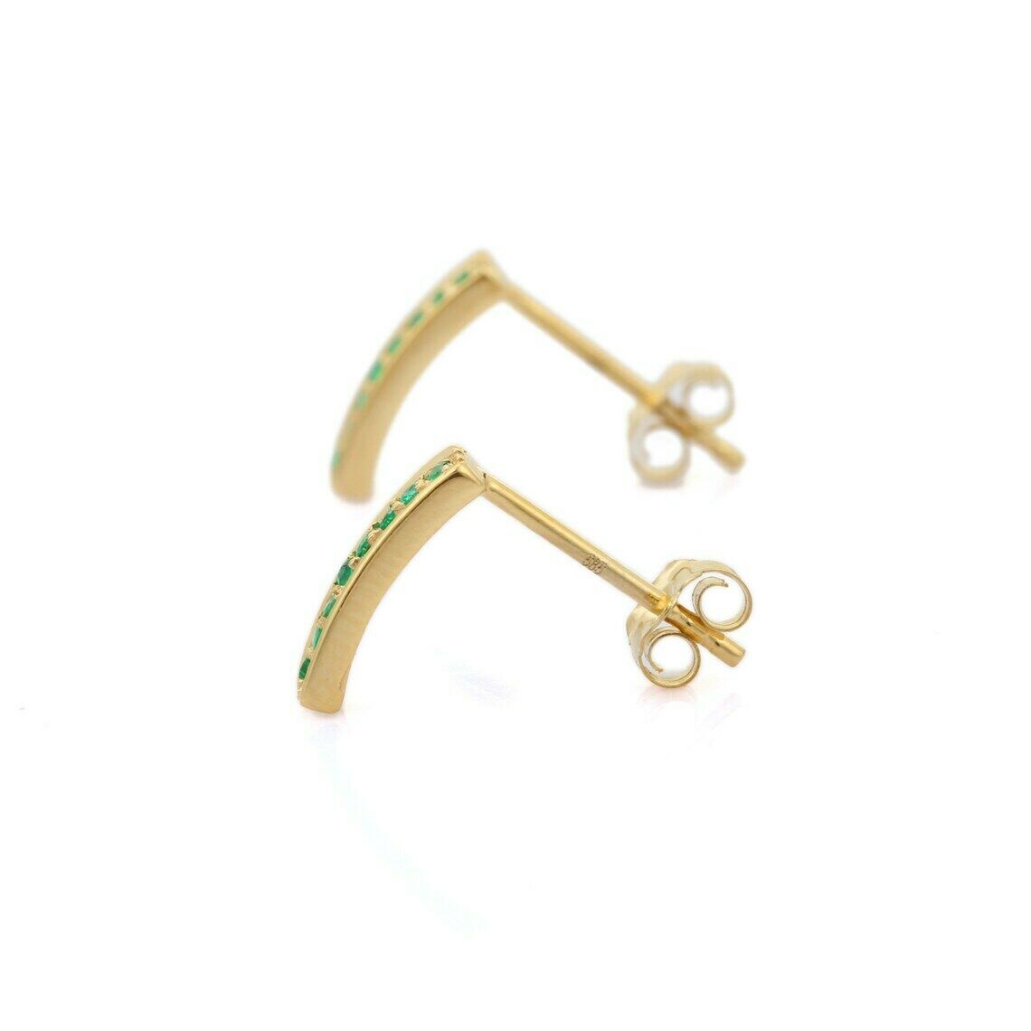 1.2ct Drop Earrings Round Cut Green Emerald Vertical Bar 14k Yellow Gold Finish