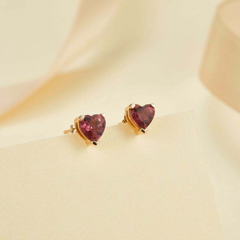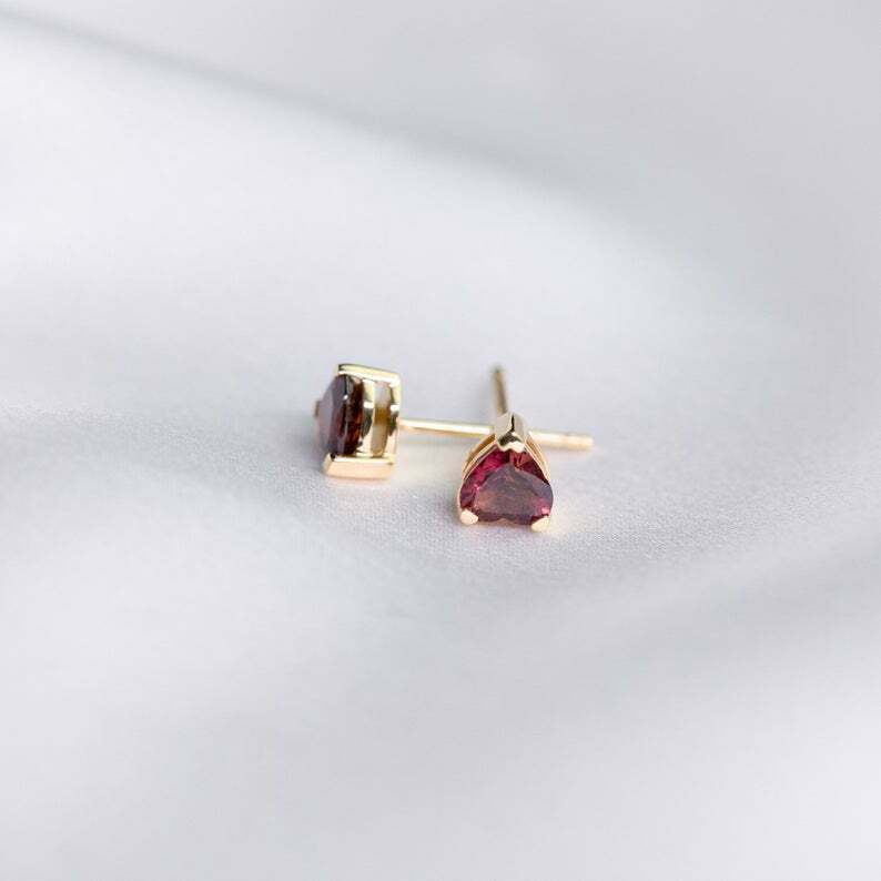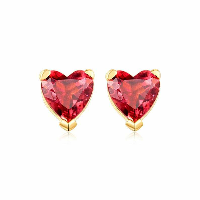 1.2ct Heart Cut Red Garnet Solitaire Stud Earrings Women 14k Yellow Gold Finish