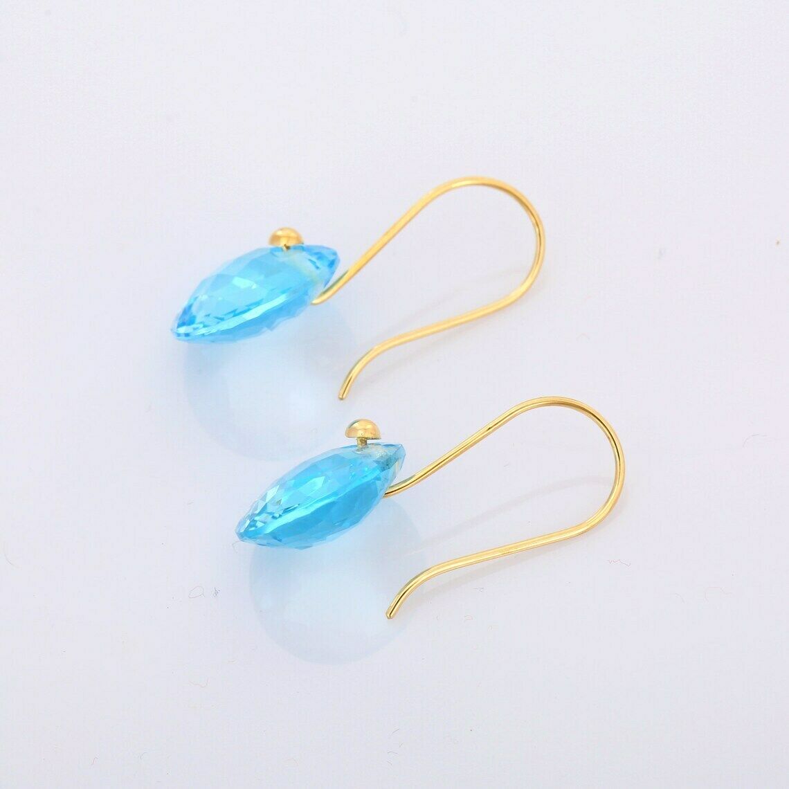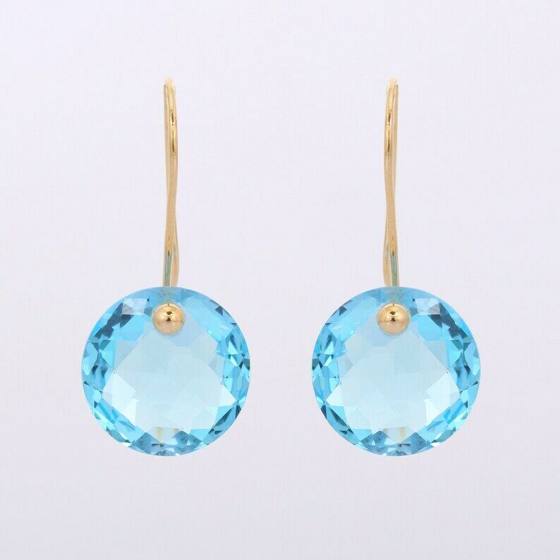1.2ct Round Cut Blue Topaz Lovely Drop Earring Women 14k Yellow Gold Finish