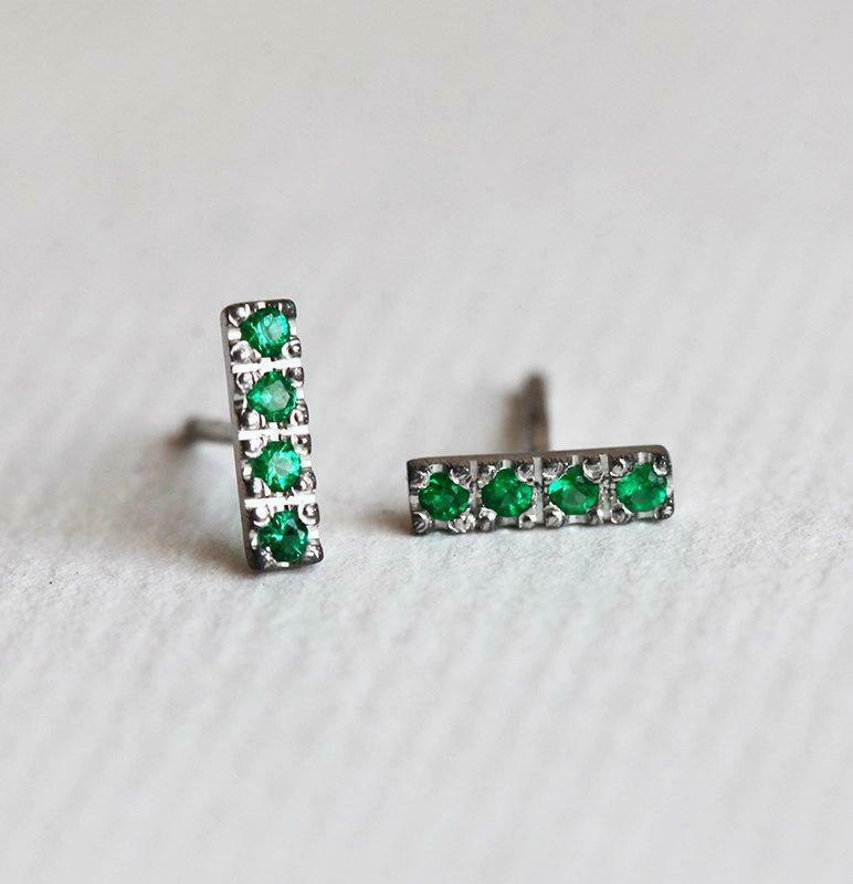 1.2ct Round Cut Green Emerald Bar Stud Earrings 14k White Gold Finish
