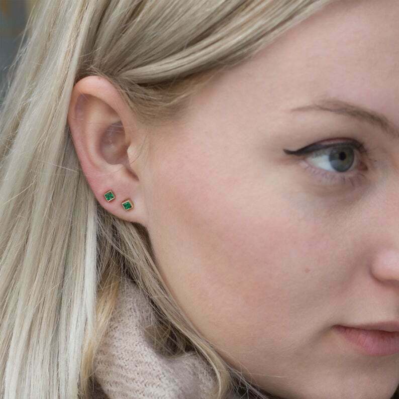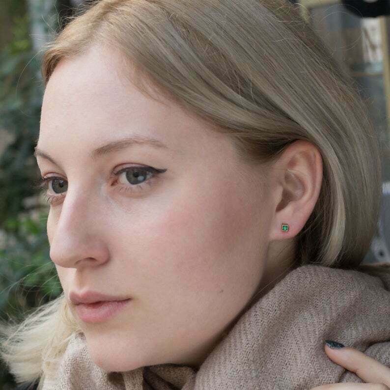 1.2ct Stud Earrings Princess Cut Green Emerald Solitaire 14k Yellow Gold Finish