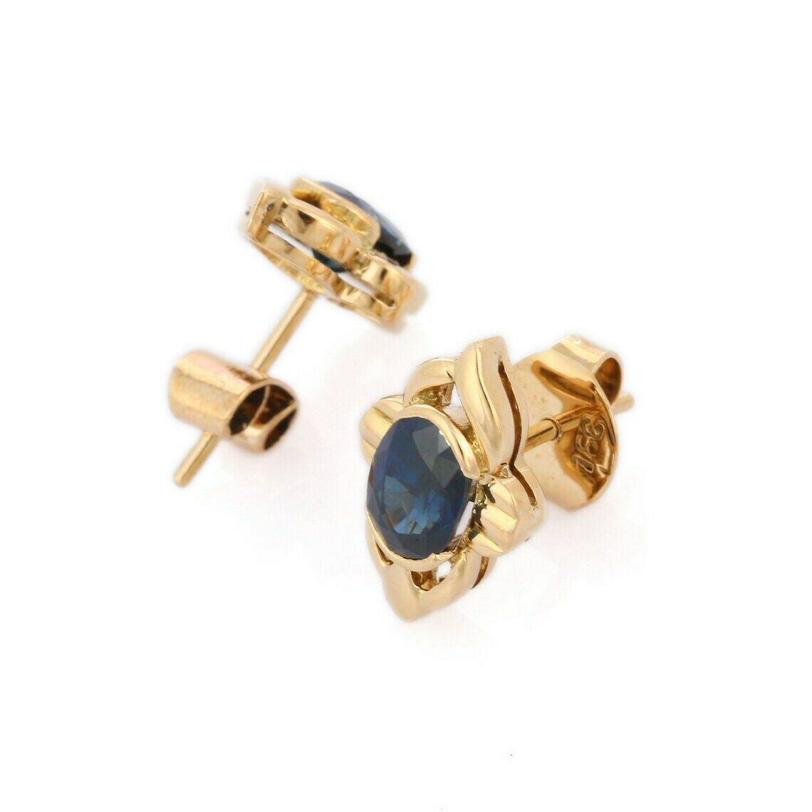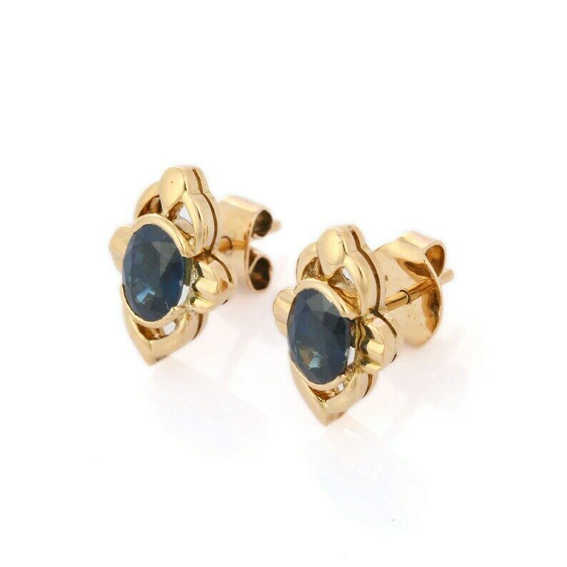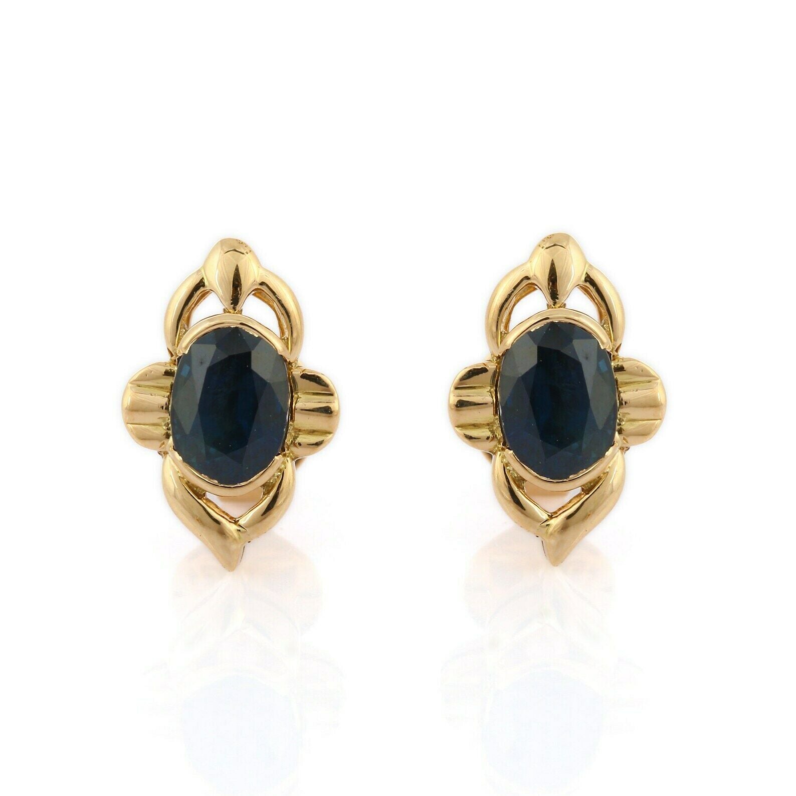 1.4ct Stud Earrings Oval Cut Blue Sapphire Stylish Design 14k Yellow Gold Finish