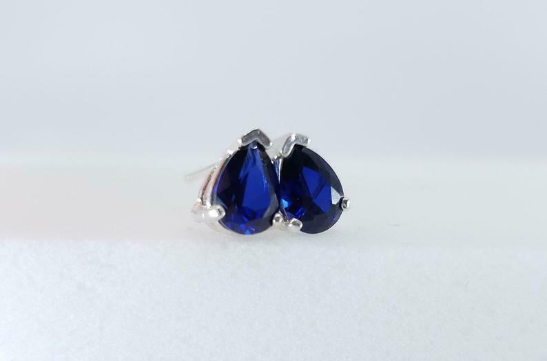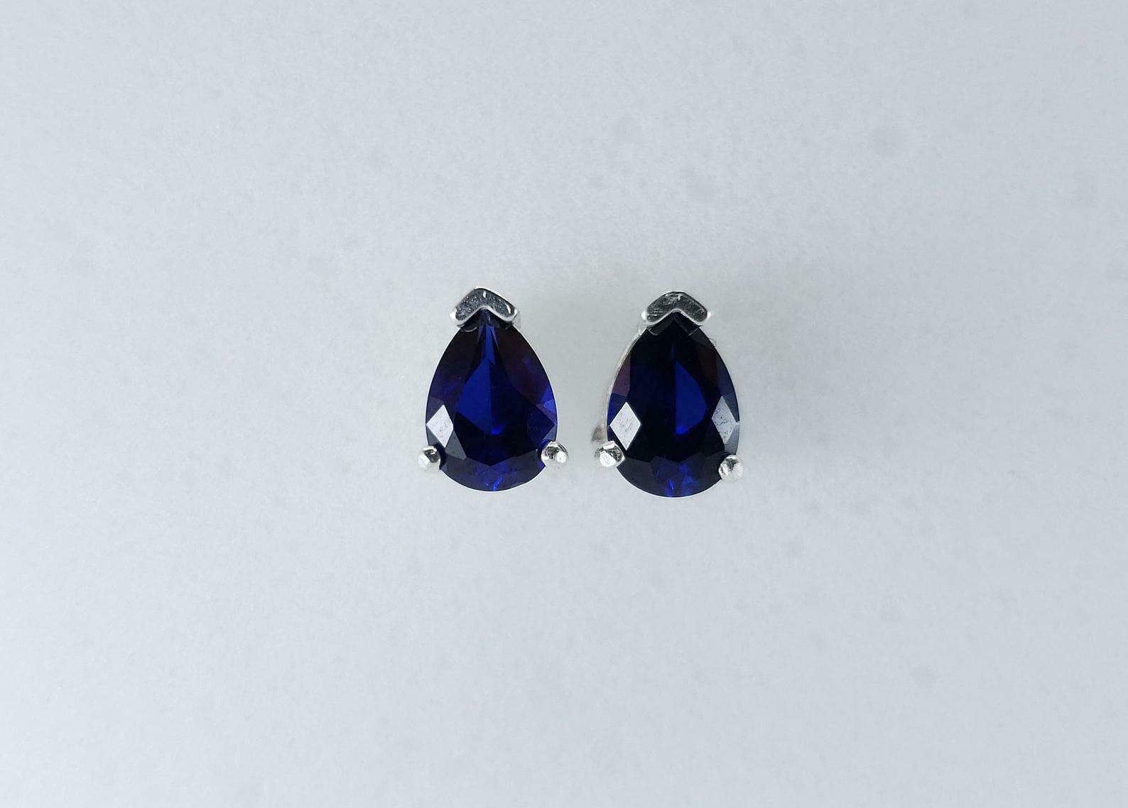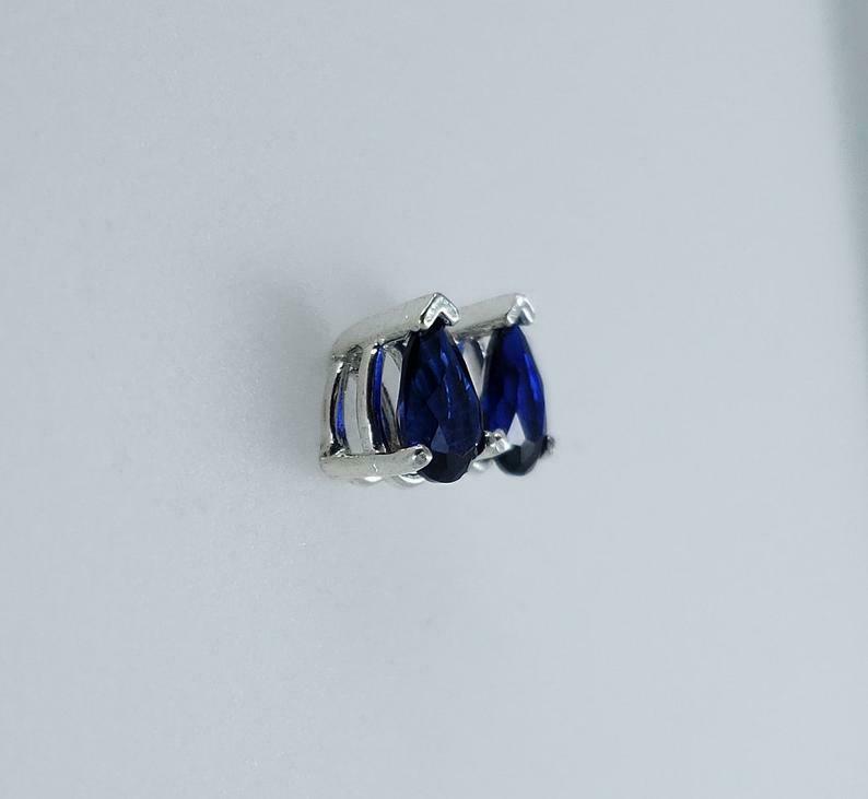1.4ct Stud Earrings Pear Cut Blue Sapphire Solitaire Design 14k WhiteGold Finish