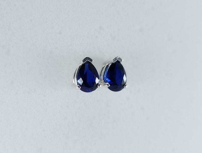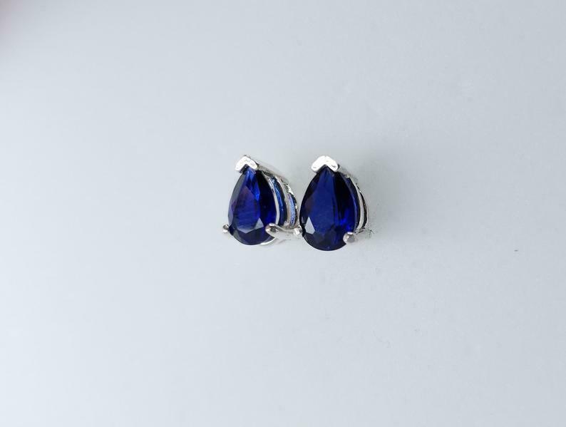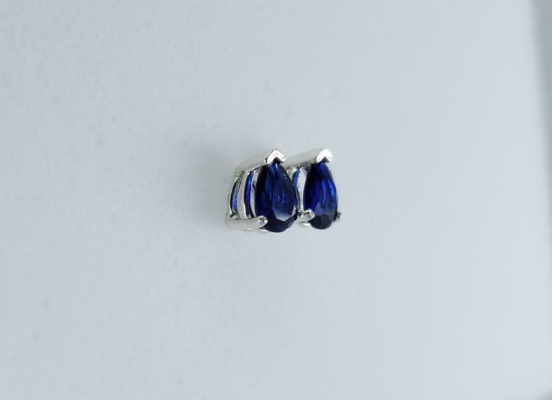 1.4ct Stud Earrings Pear Cut Blue Sapphire Solitaire Design 14k White Gold Finish