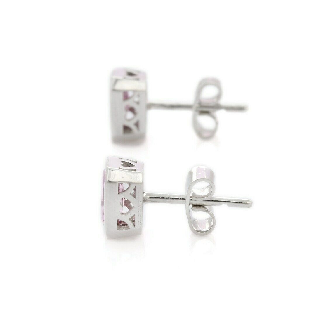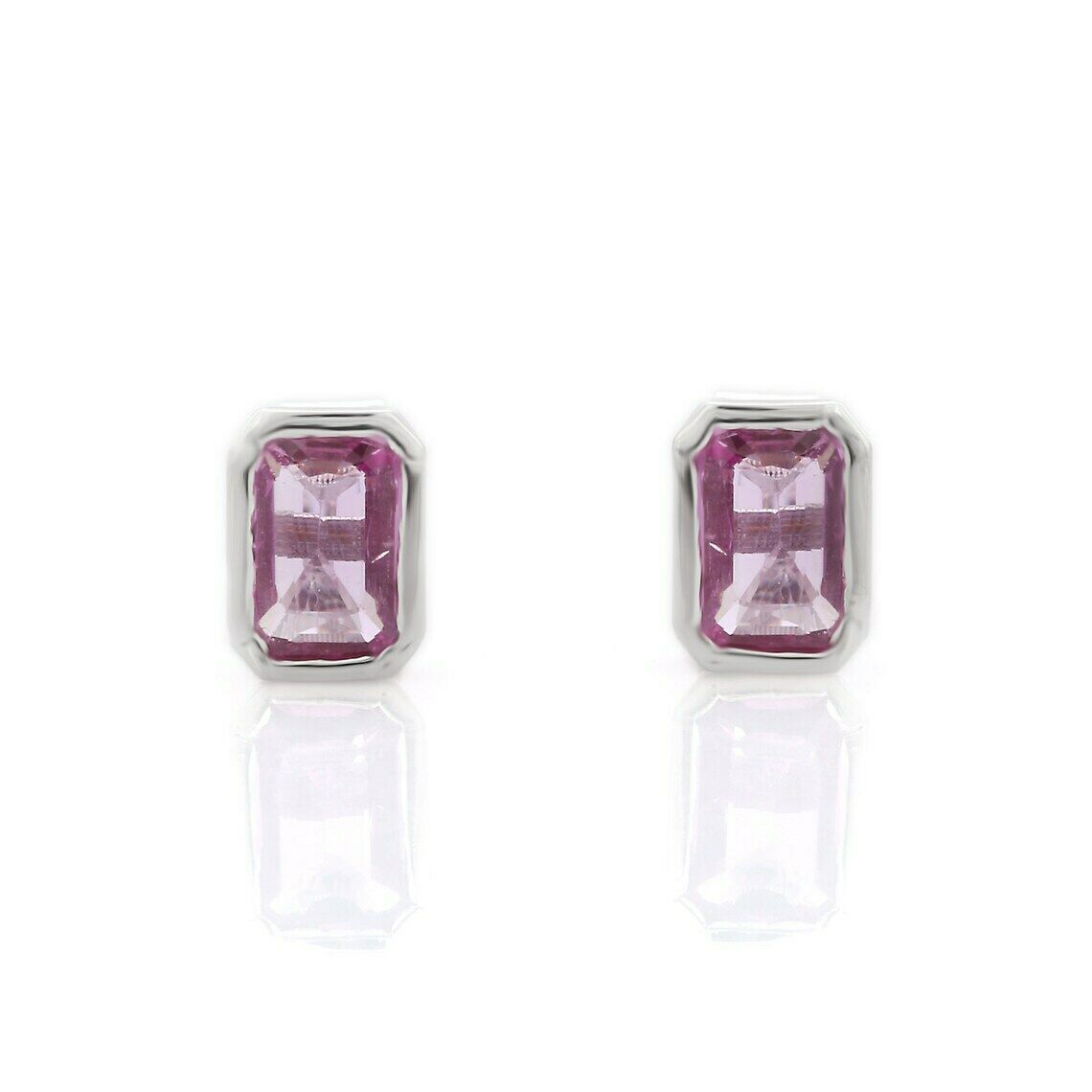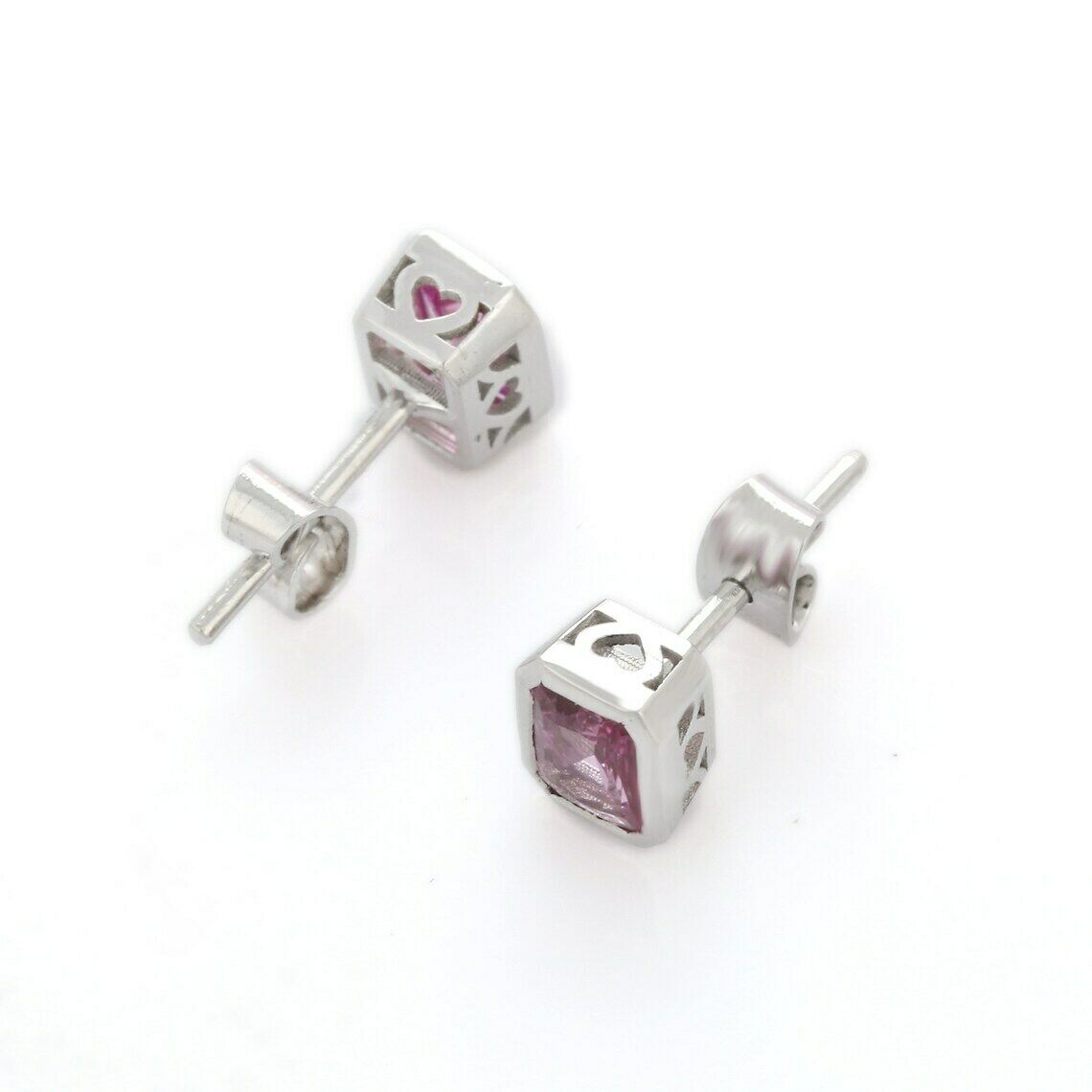 1.4ct Stud Earrings Pink Sapphire Cut Bezel Set Solitaire 14k White Gold Finish