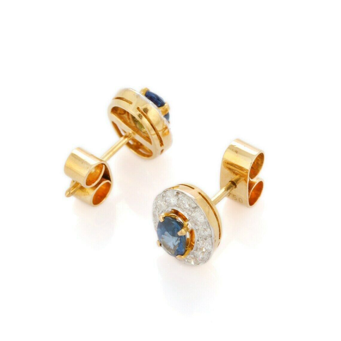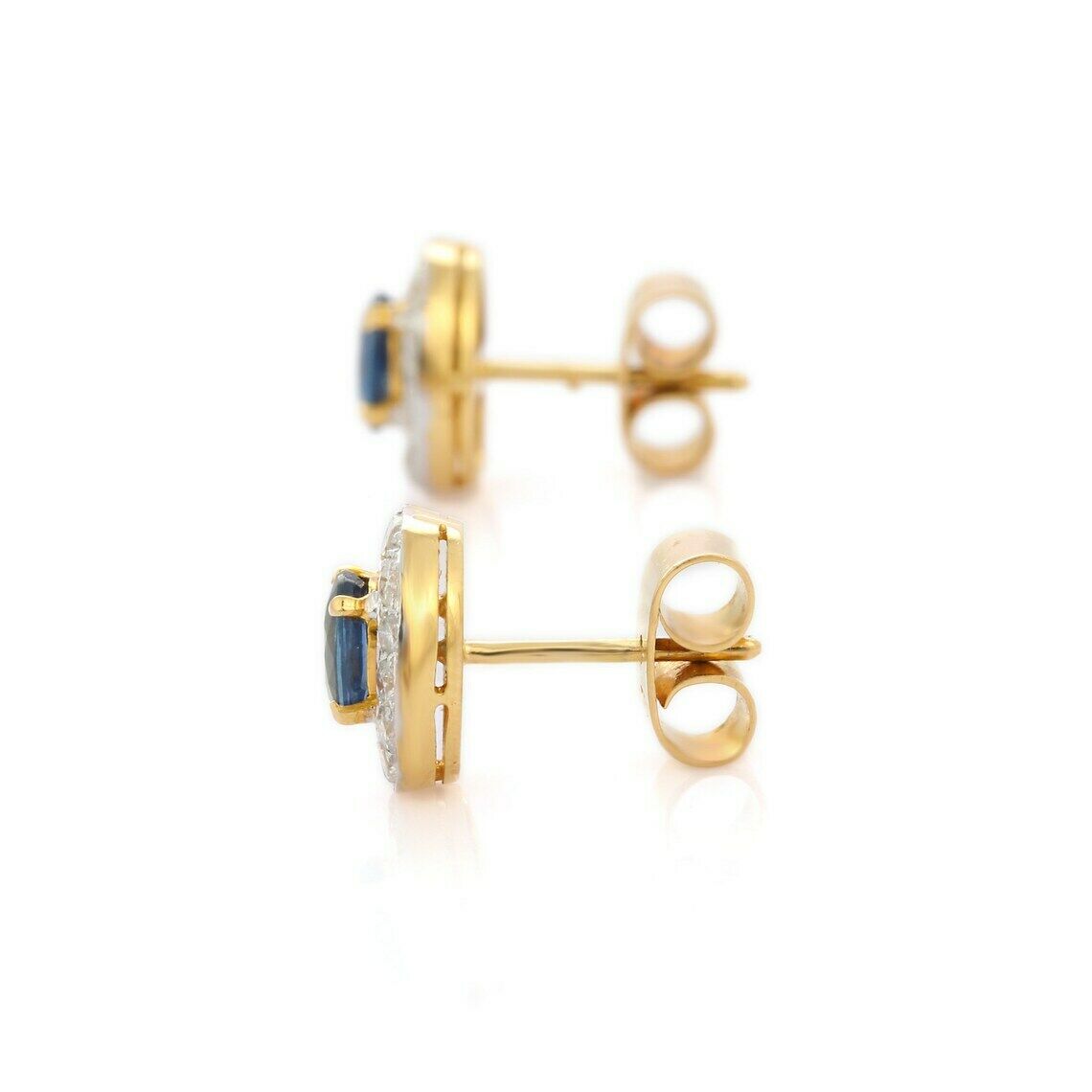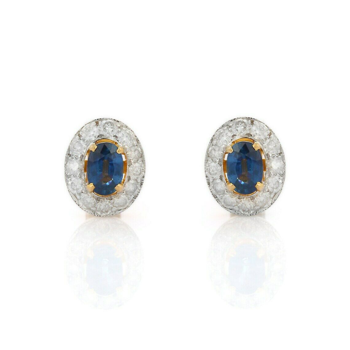 1.56ct Stud Earrings Oval Cut Blue Sapphire Halo Design 14k Yellow Gold Finish