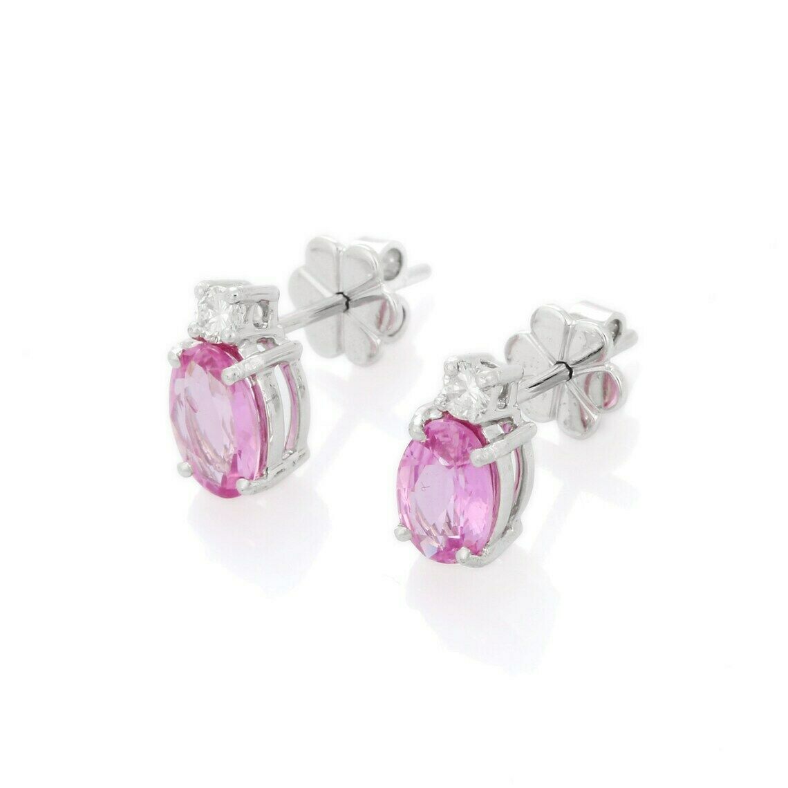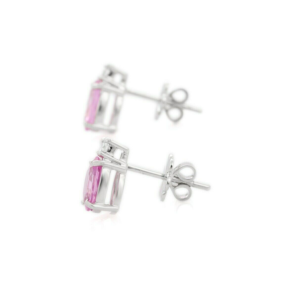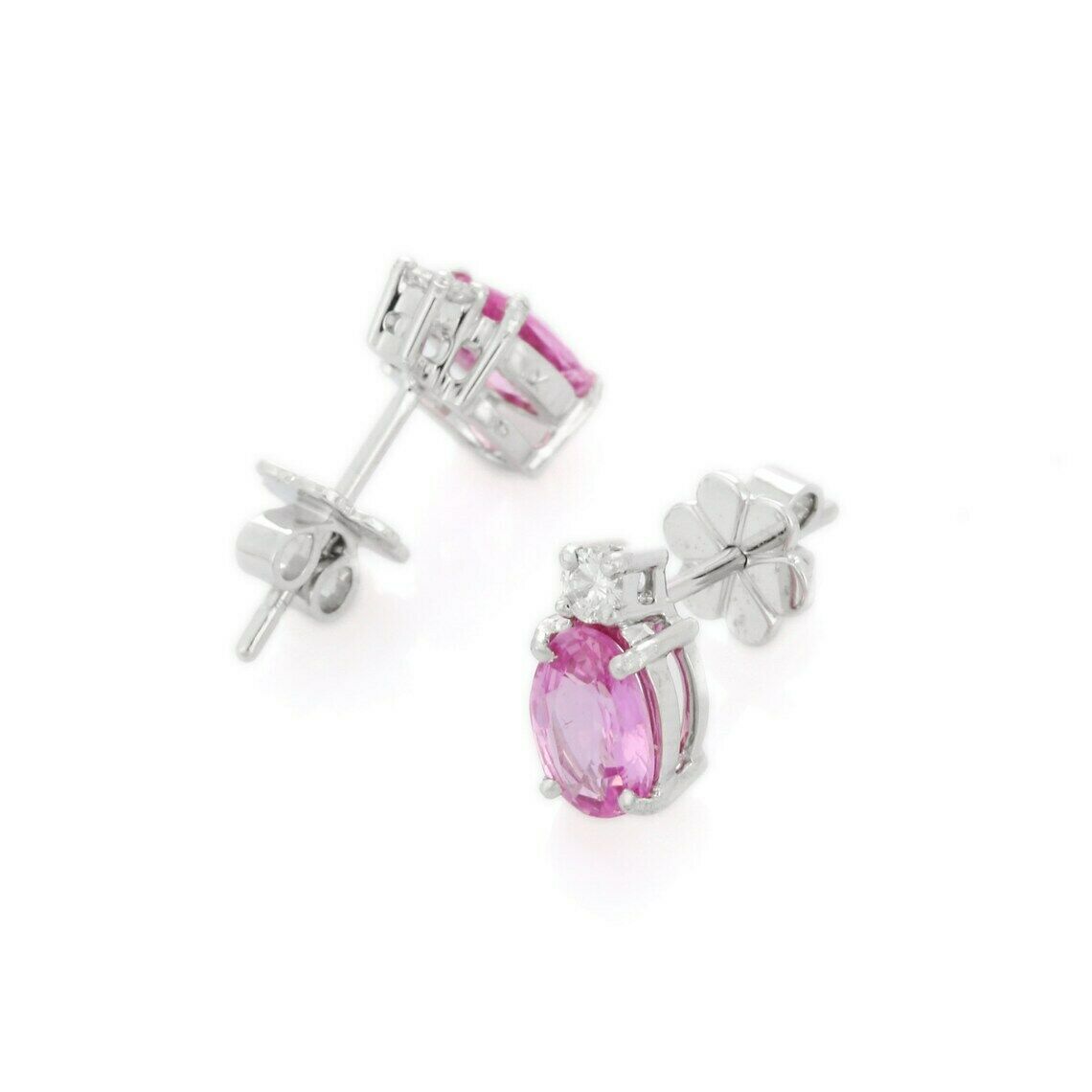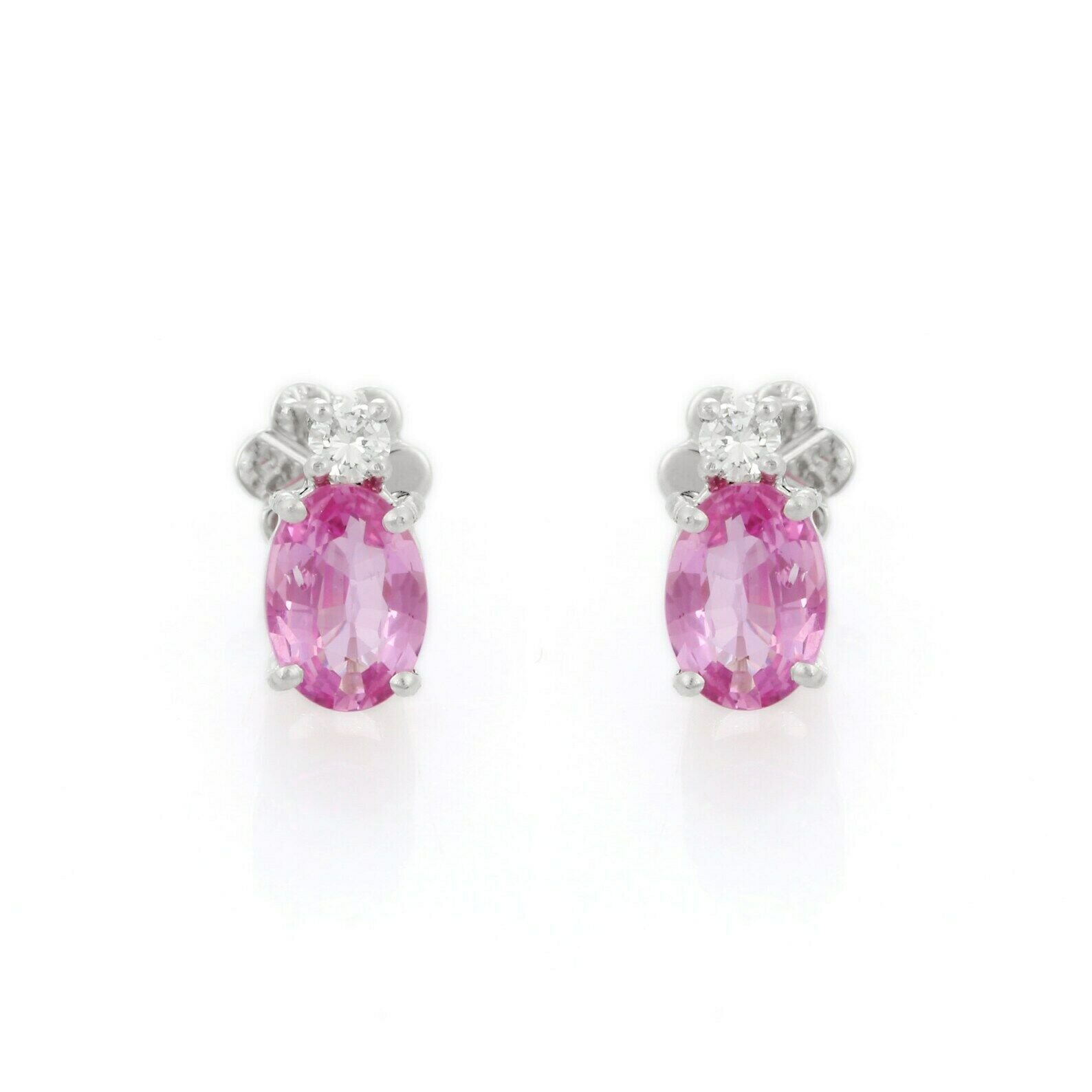 1.56ct Stud Earrings Oval Cut Pink Sapphire Diamond Petite 14k White Gold Finish