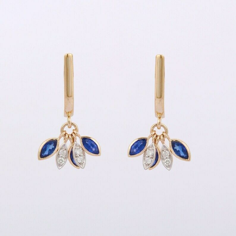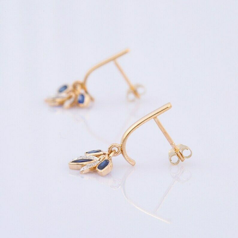 1.5ct Drop Earrings Marquise Cut Blue Sapphire Leaf Design 14k Yellow Gold Finish