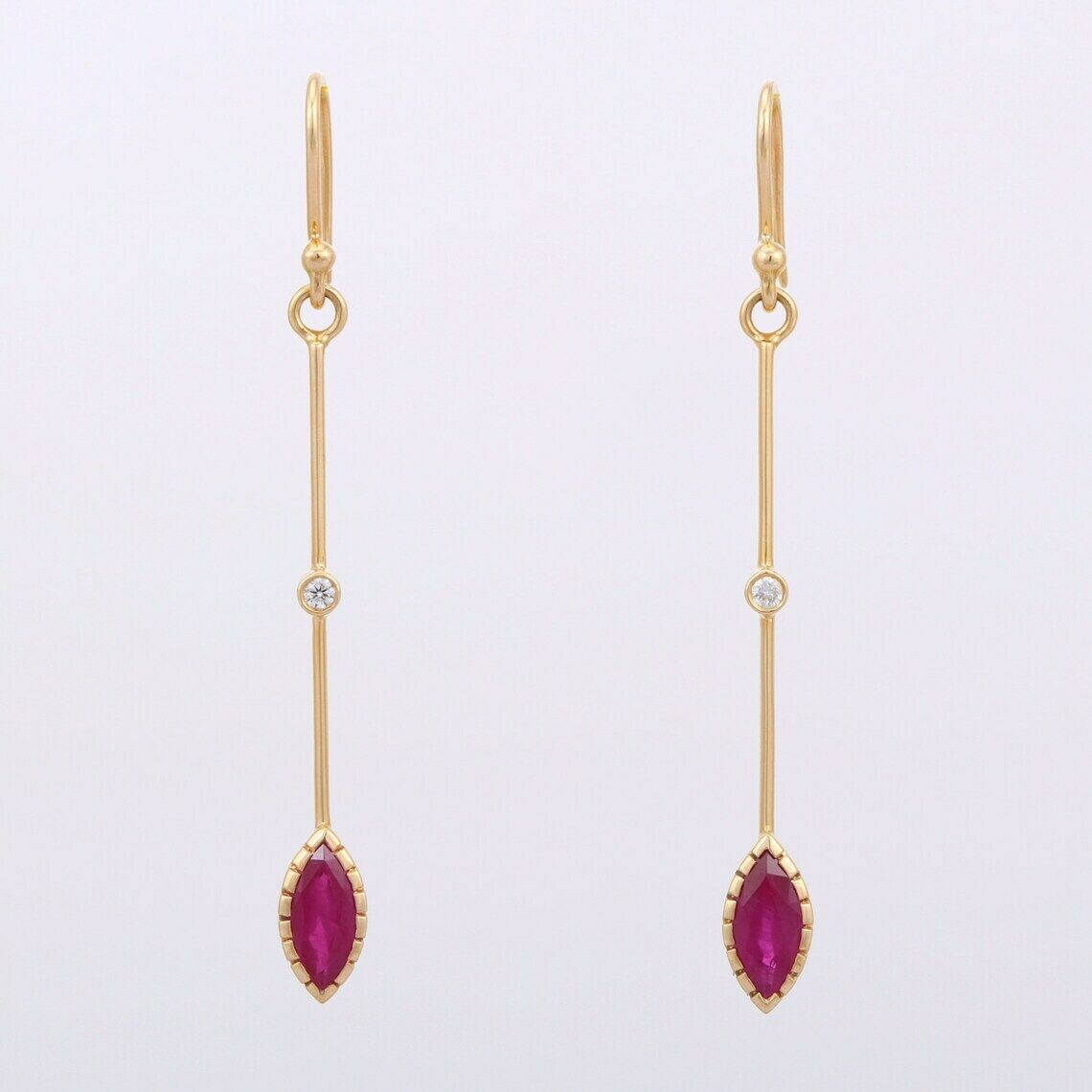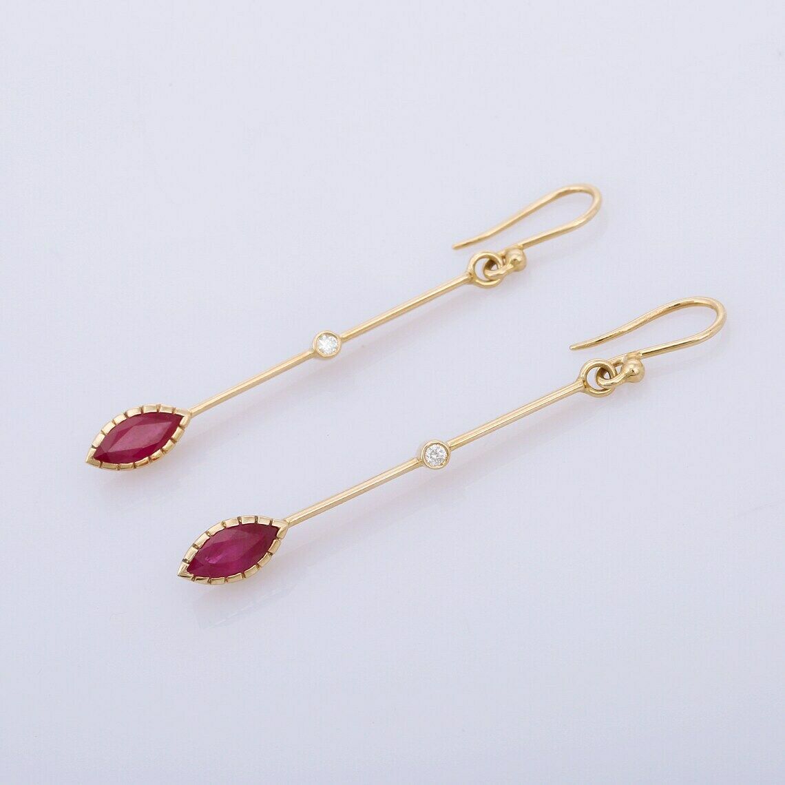 1.5ct Drop Earrings Marquise Cut Pink Ruby Dangling 14k Yellow Gold Finish