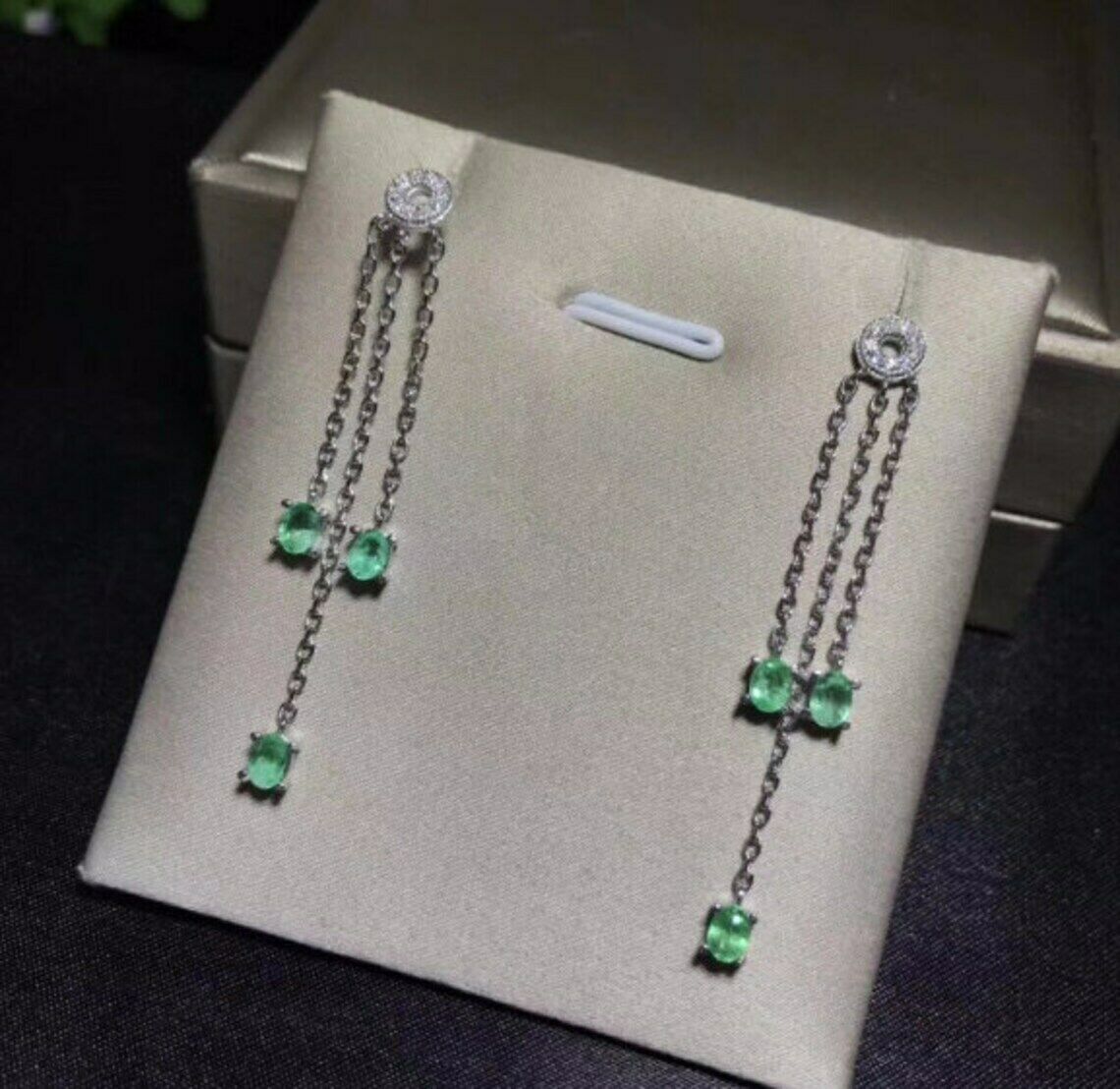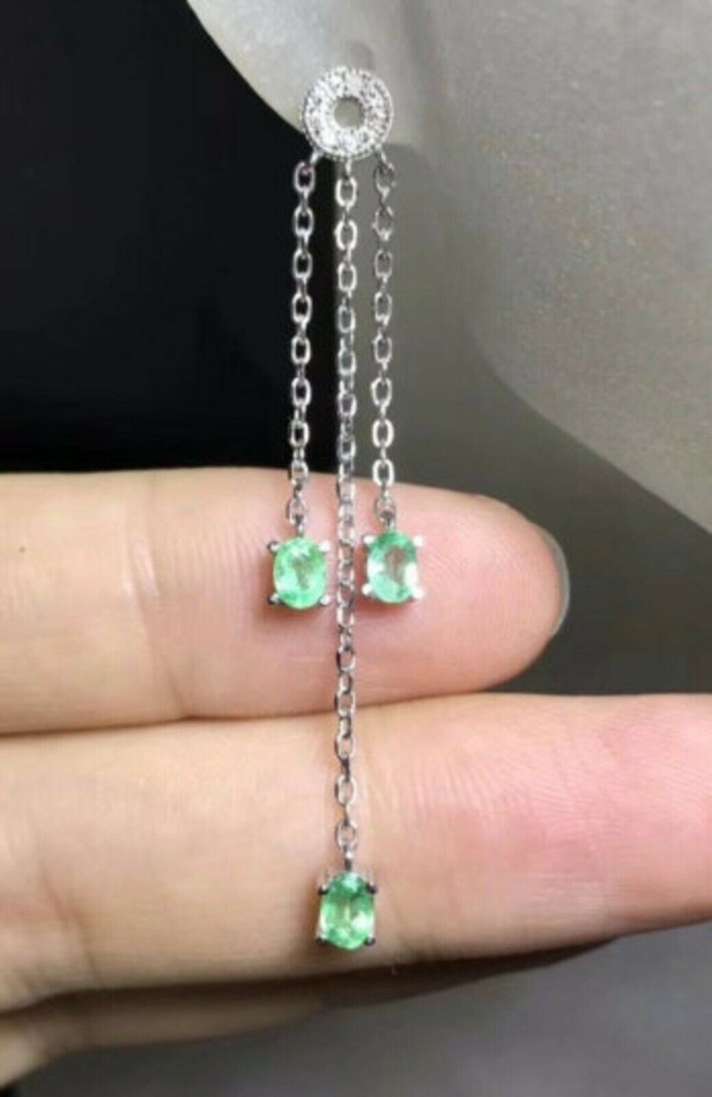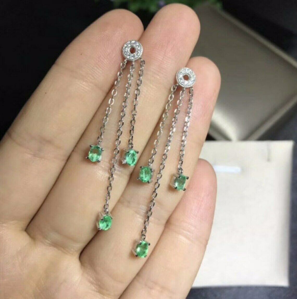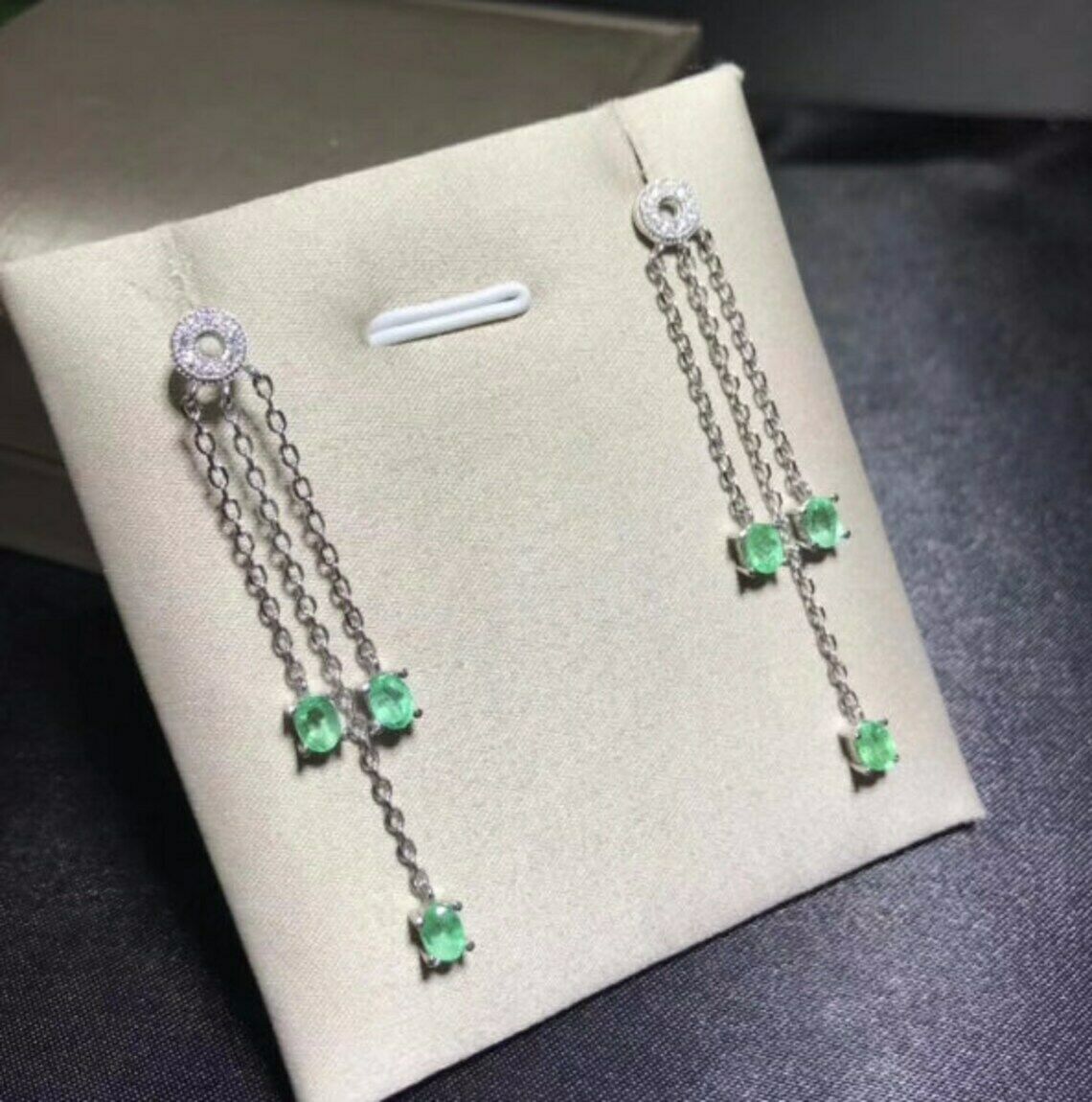 1.5ct Drop Earrings Oval Cut Green Emerald Chandelier 14k White Gold Finish