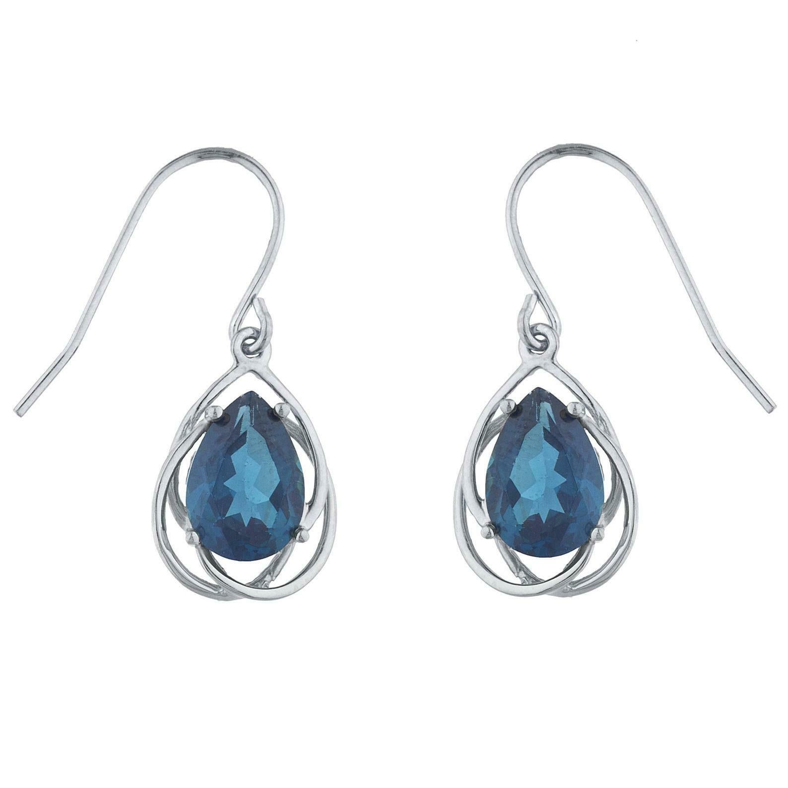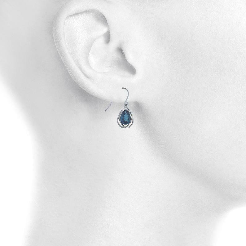 1.5ct Drop Earrings Pear Cut London Blue Topaz Intertwined 14k White Gold Finish