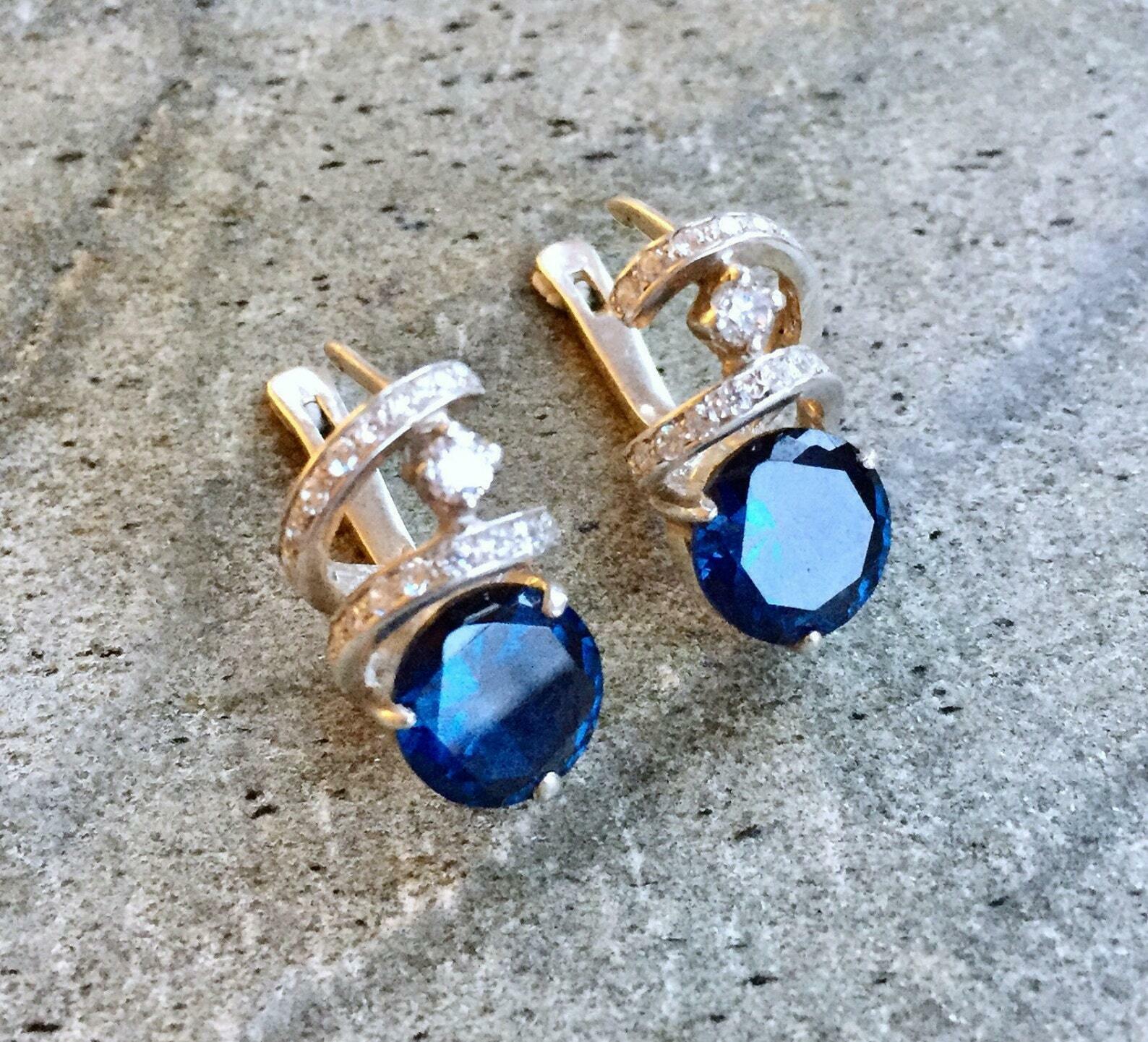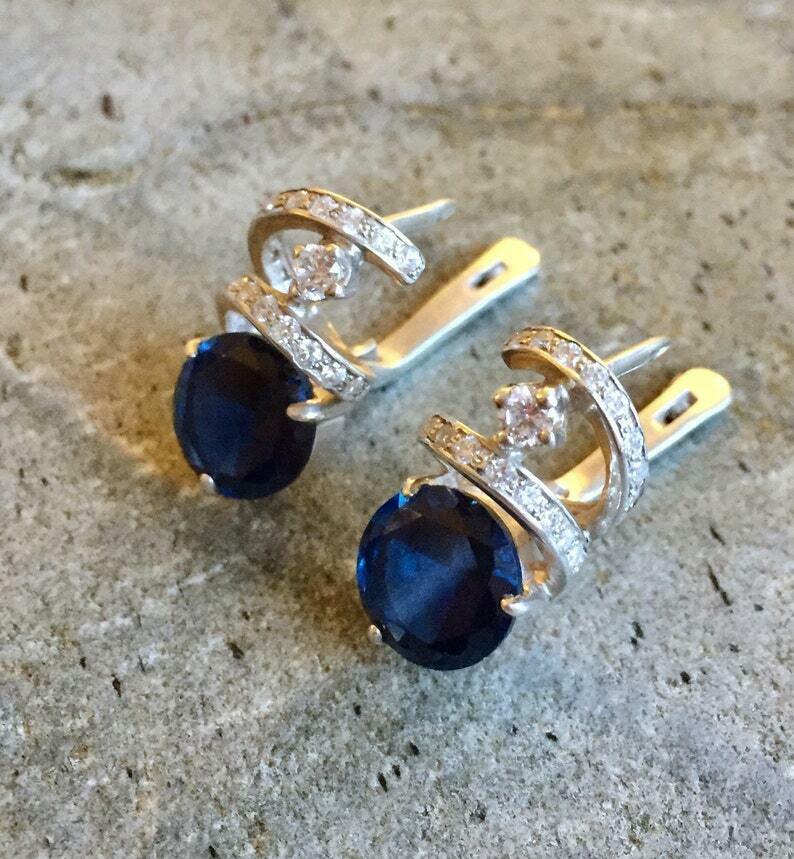 1.5ct Drop Earrings Round Cut Blue Sapphire Spiral Stylish 14k White Gold Finish