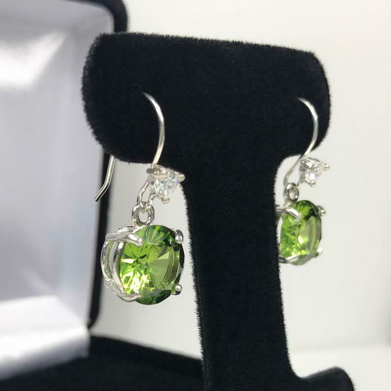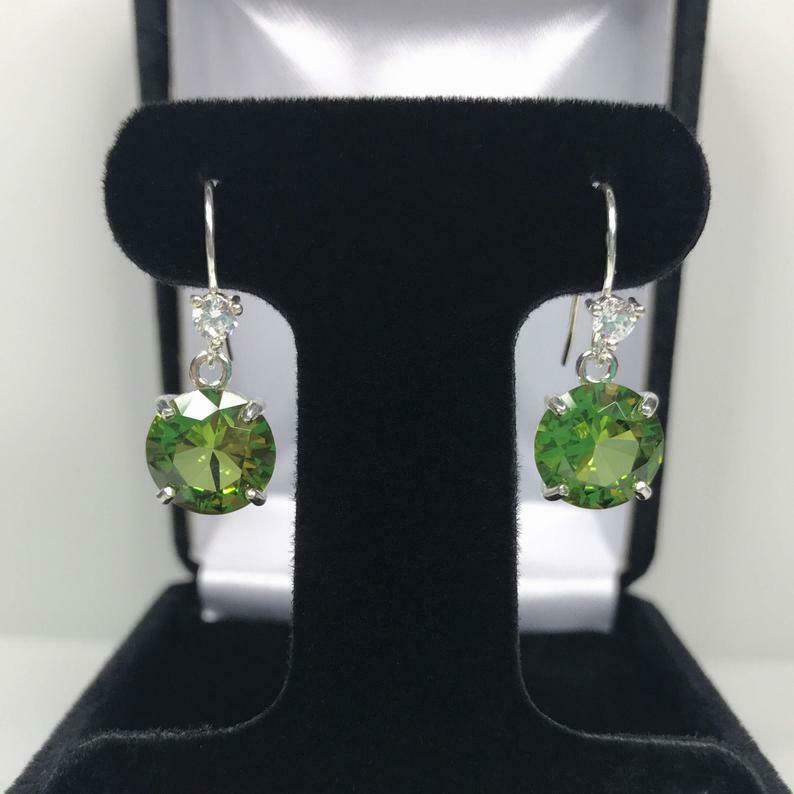 1.5ct Drop Earrings Round Cut Green Peridot Stylish Fish Hook 14k WhiteGold Over