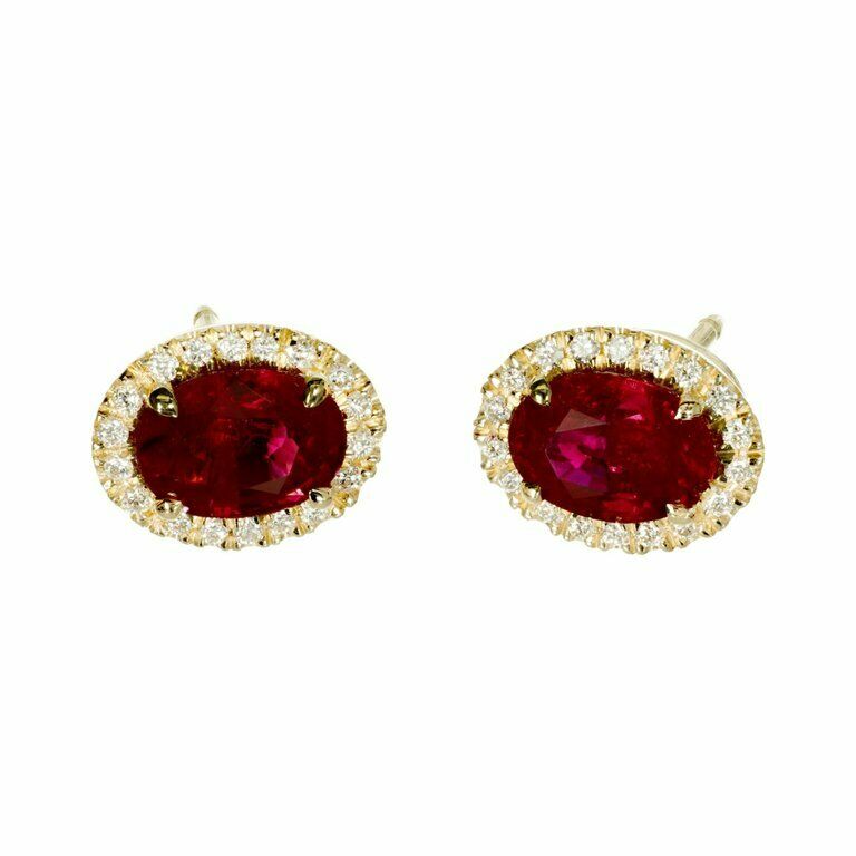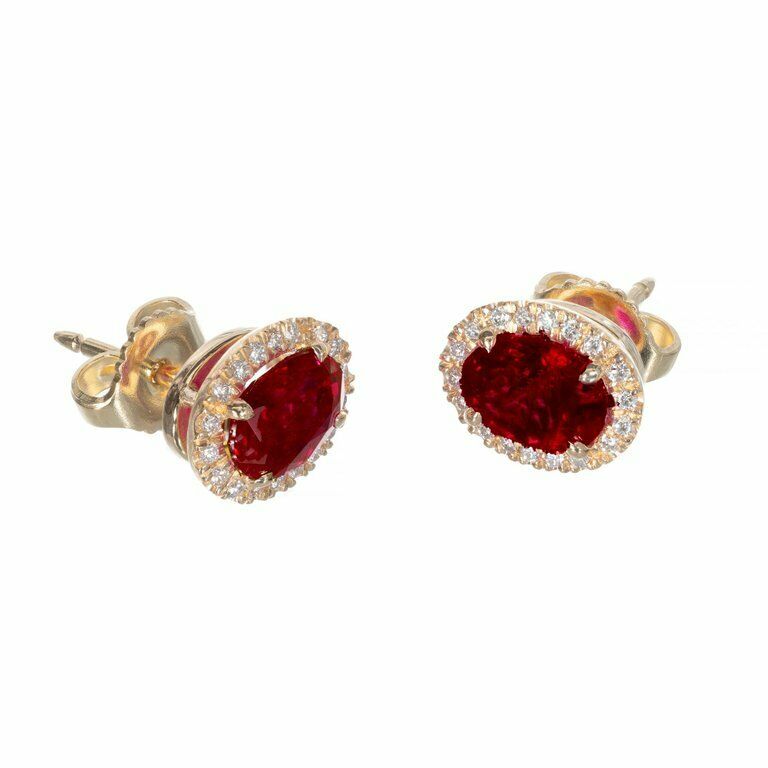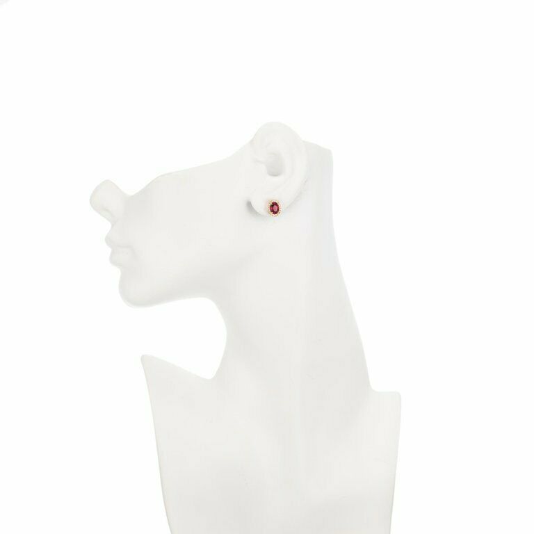 1.5ct Oval Cut Pink Ruby Diamond Halo Stud Earrings 14k Yellow Gold Finish
