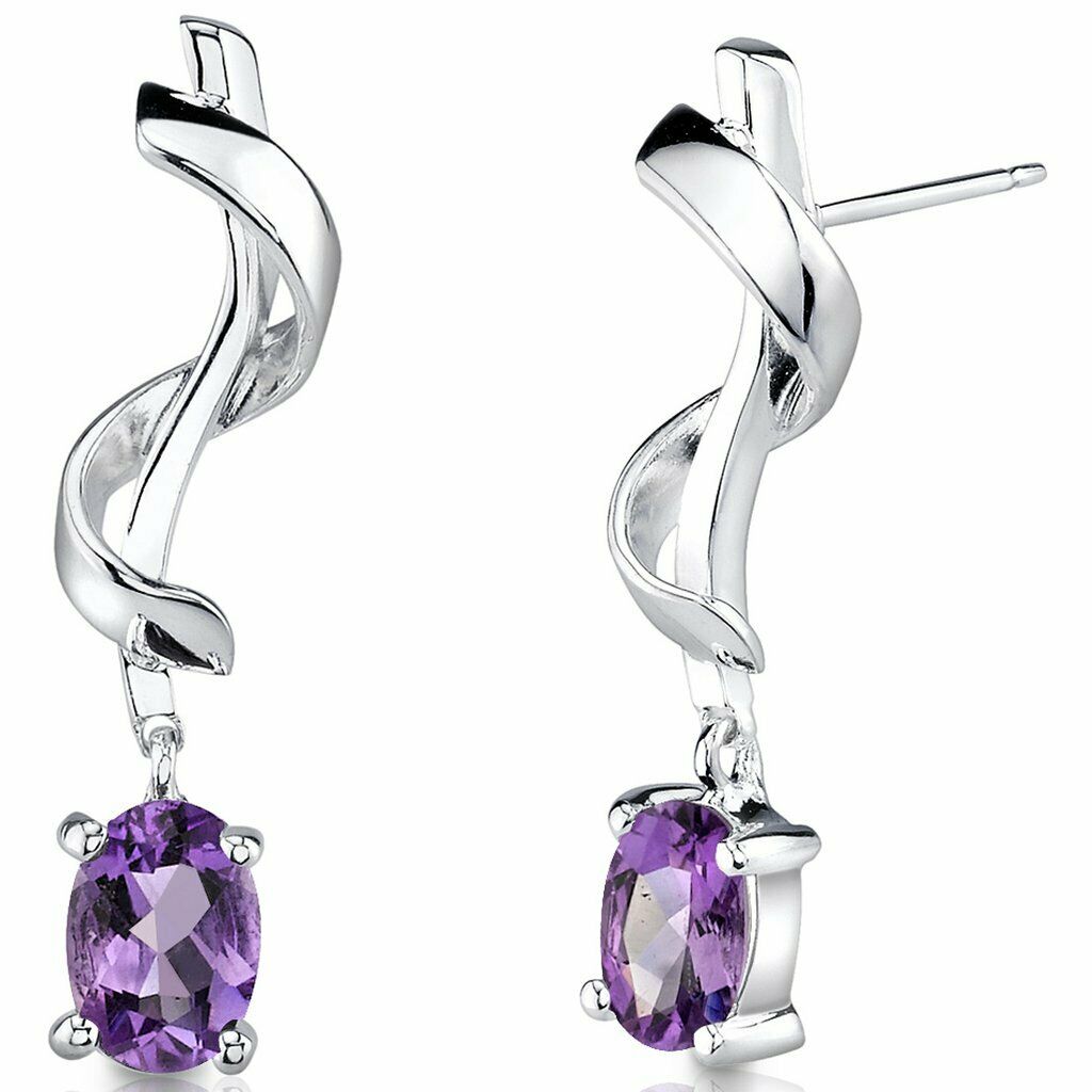 1.5Ct Oval Cut Purple Amethyst Stylish Trendy Drop Earring 14K White Gold Finish