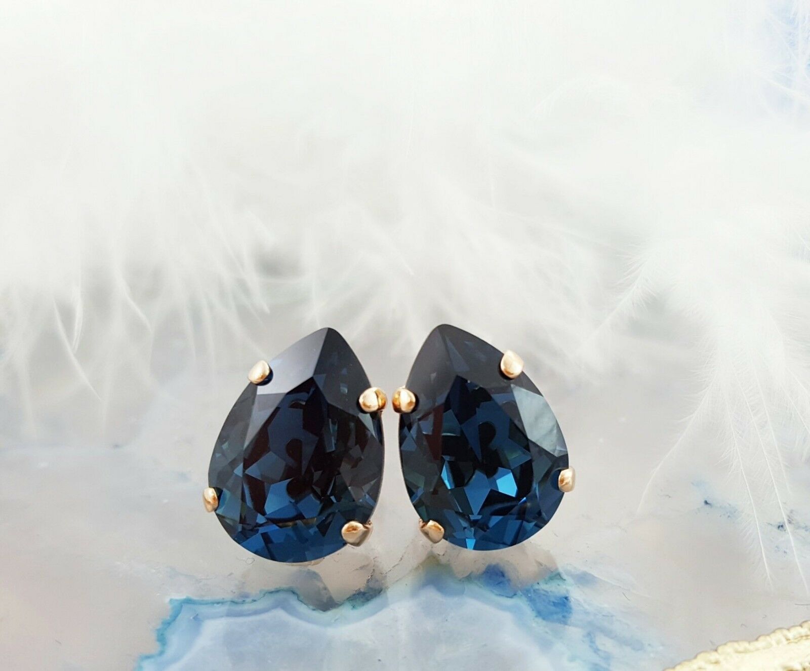 1.5ct Pear Cut Blue Sapphire Classy Solitaire Stud Earrings 14k Rose Gold Finish