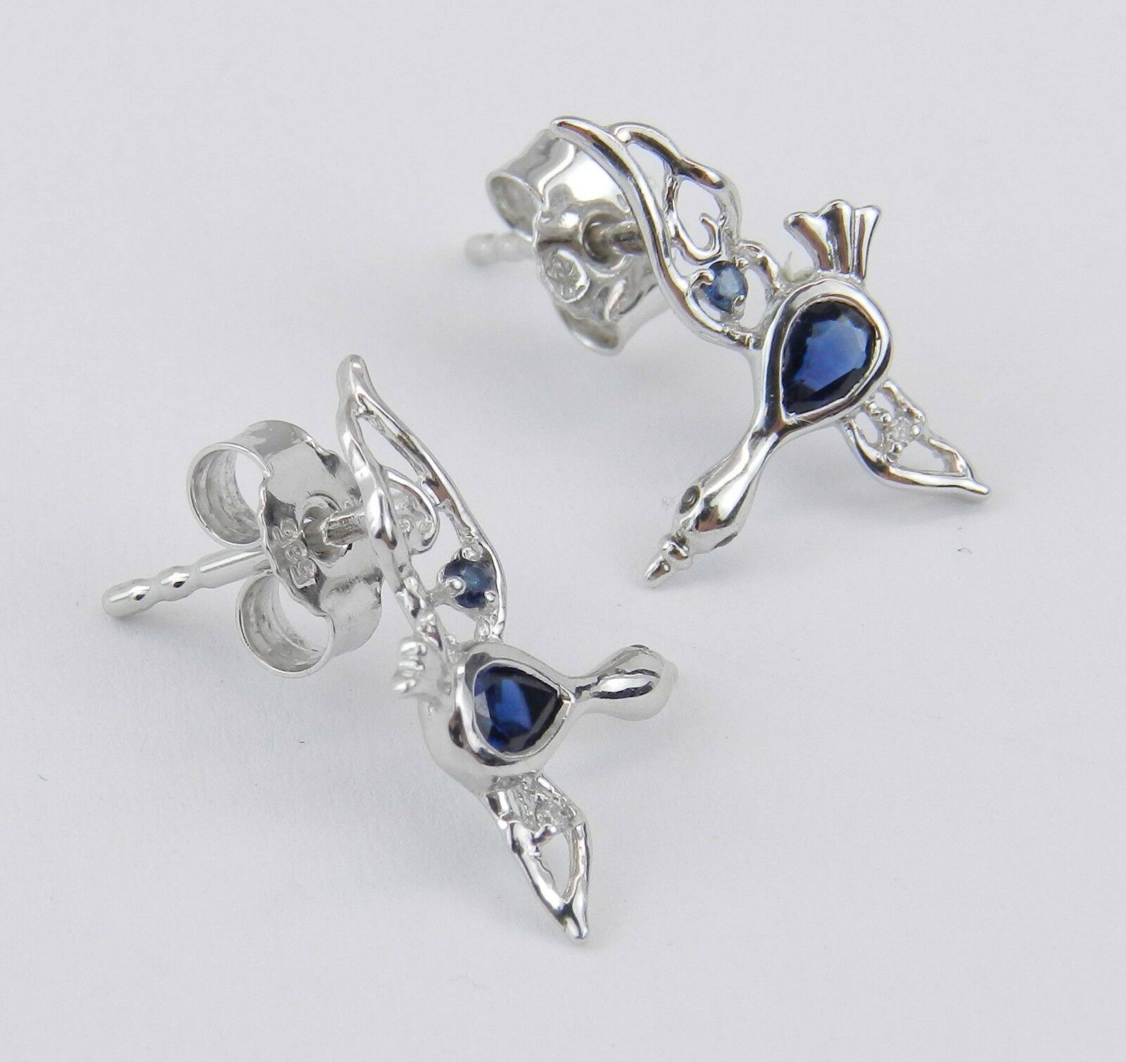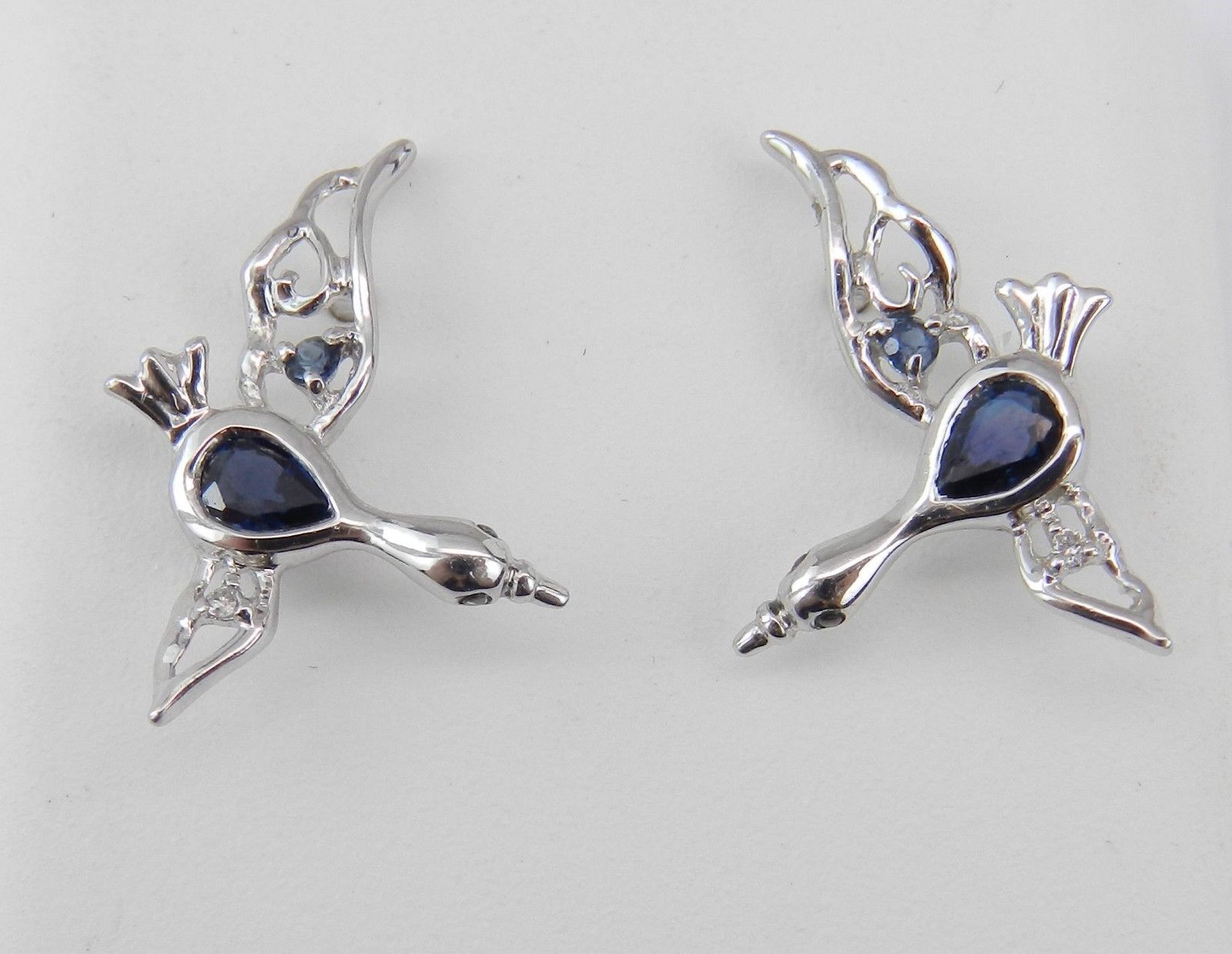 1.5ct Pear Cut Blue Sapphire Duck Geese Swan Stud Earrings 14k White Gold Finish