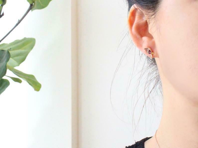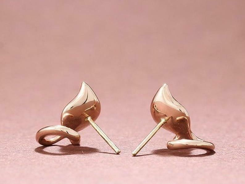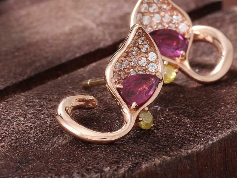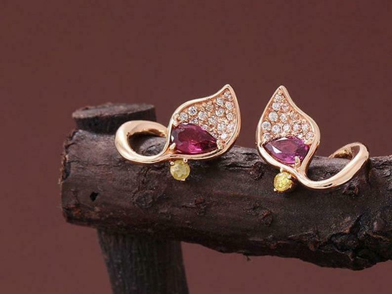 1.5ct Pear Cut Pink Ruby Stylish Leaf Petal Stud Earrings 14k Rose Gold Finish