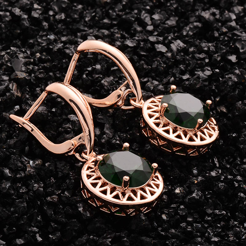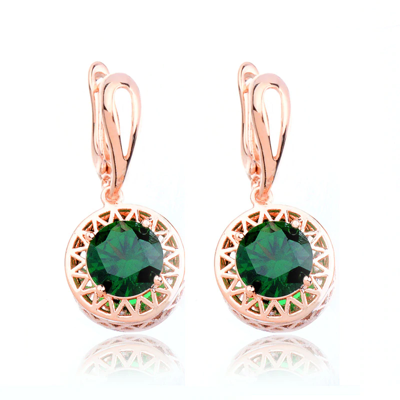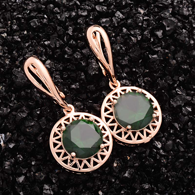 1.5Ct Round Cut Green Emerald Circular Party Drop Earrings 14K Rose Gold Finish