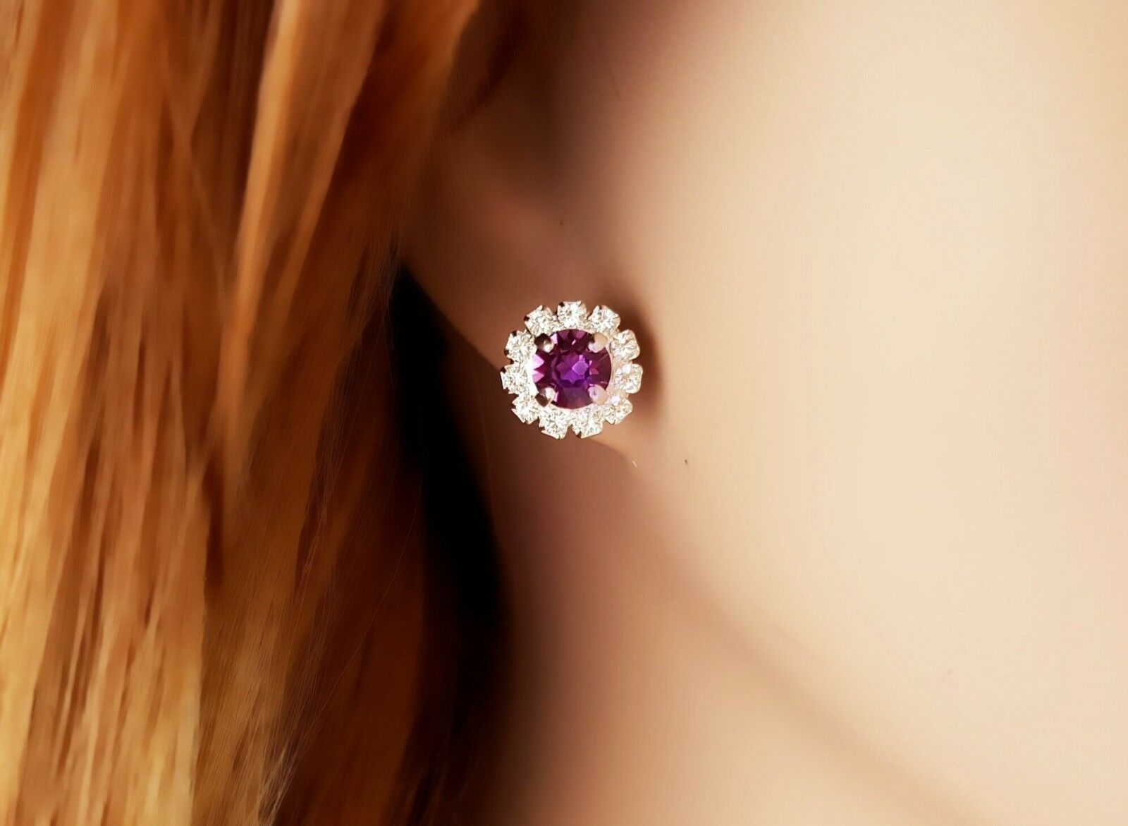 1.5ct Round Cut Purple Amethyst Halo Stud Earrings 14k White Gold Finish