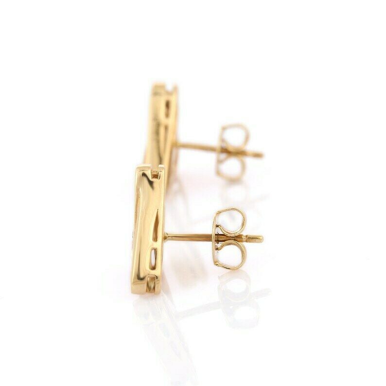 1.5ct Stud Earrings Baguette Cut Blue Sapphire Pyramid 14k Yellow Gold Finish
