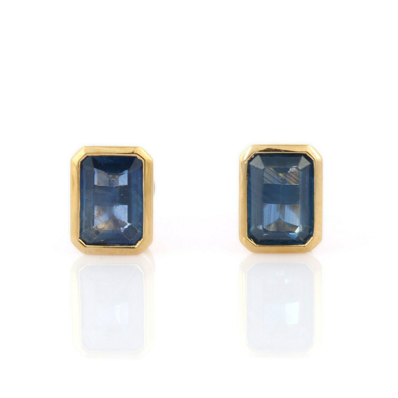 1.5ct Stud Earrings Emerald Cut Sapphire Bezel Set Solitaire 14k Yellow Gold Over