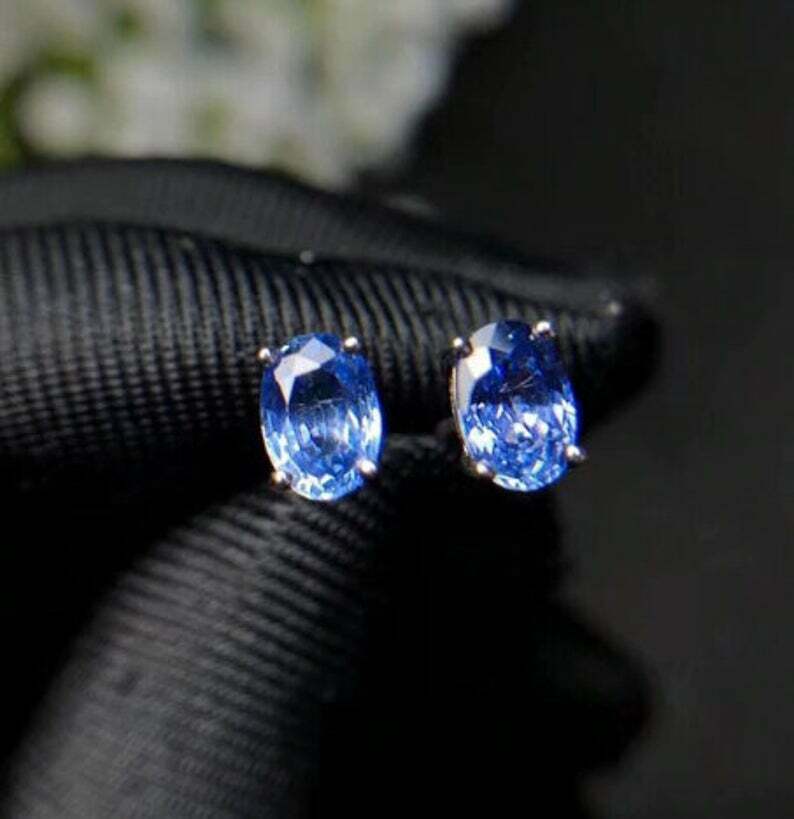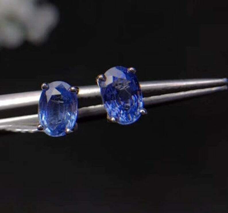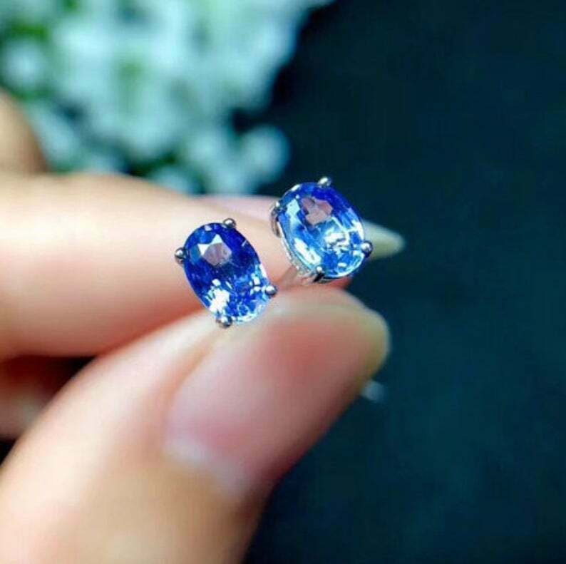 1.5ct Stud Earrings Oval Cut Blue Tanzanite Solitaire Design 14k White Gold Over