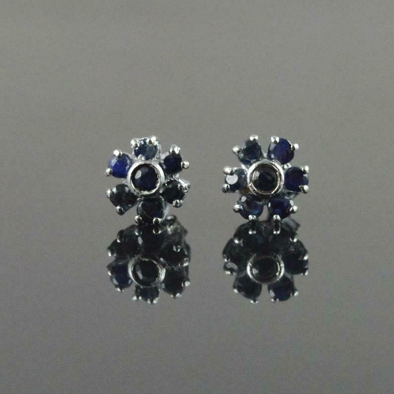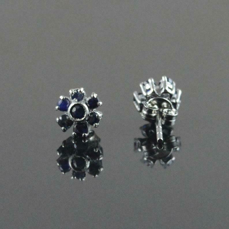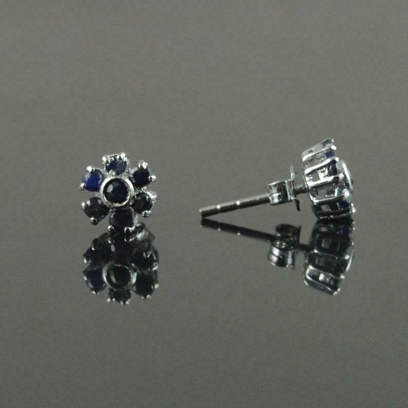 1.5ct Stud Earrings Round Cut Blue Sapphire Floral Cluster 14k White Gold Finish