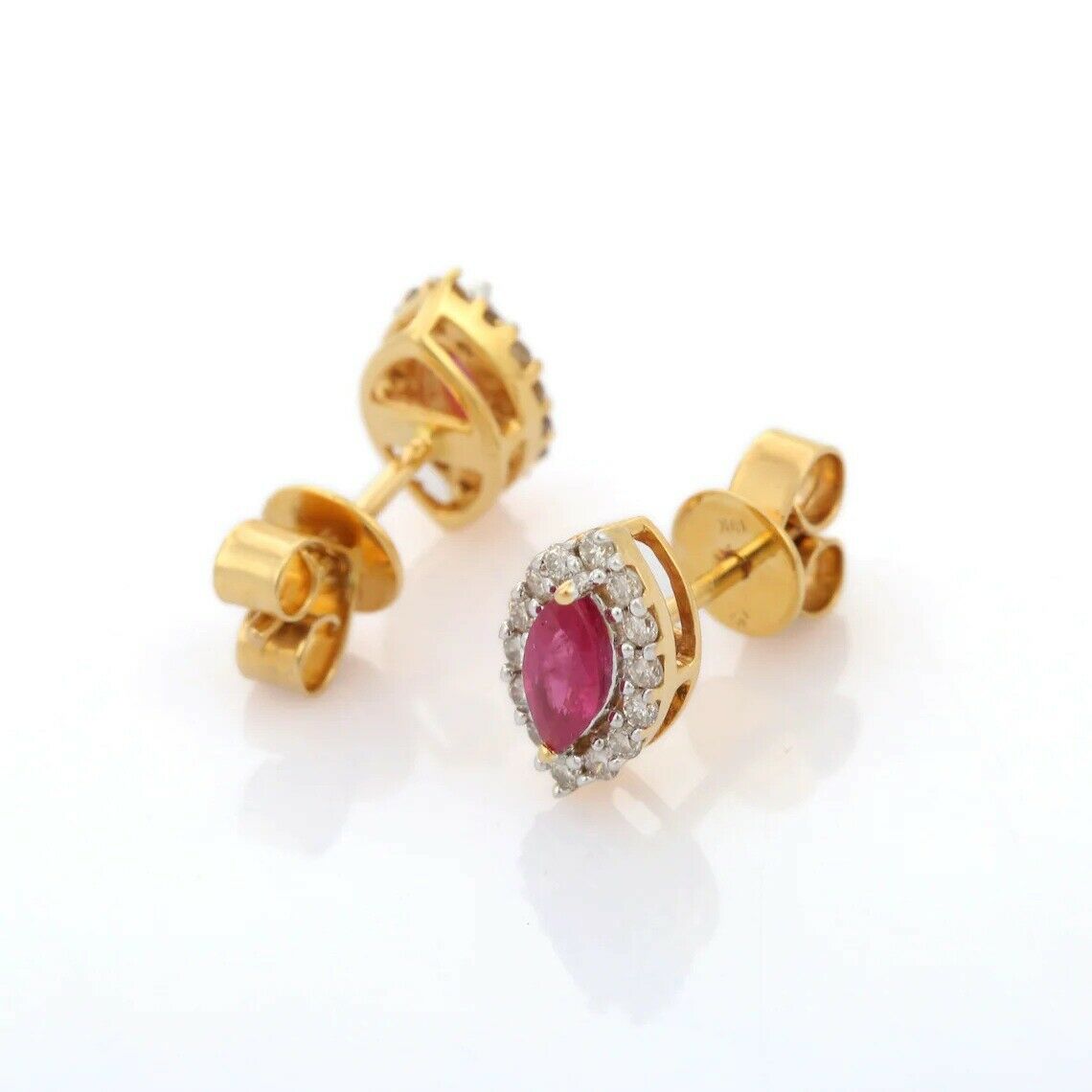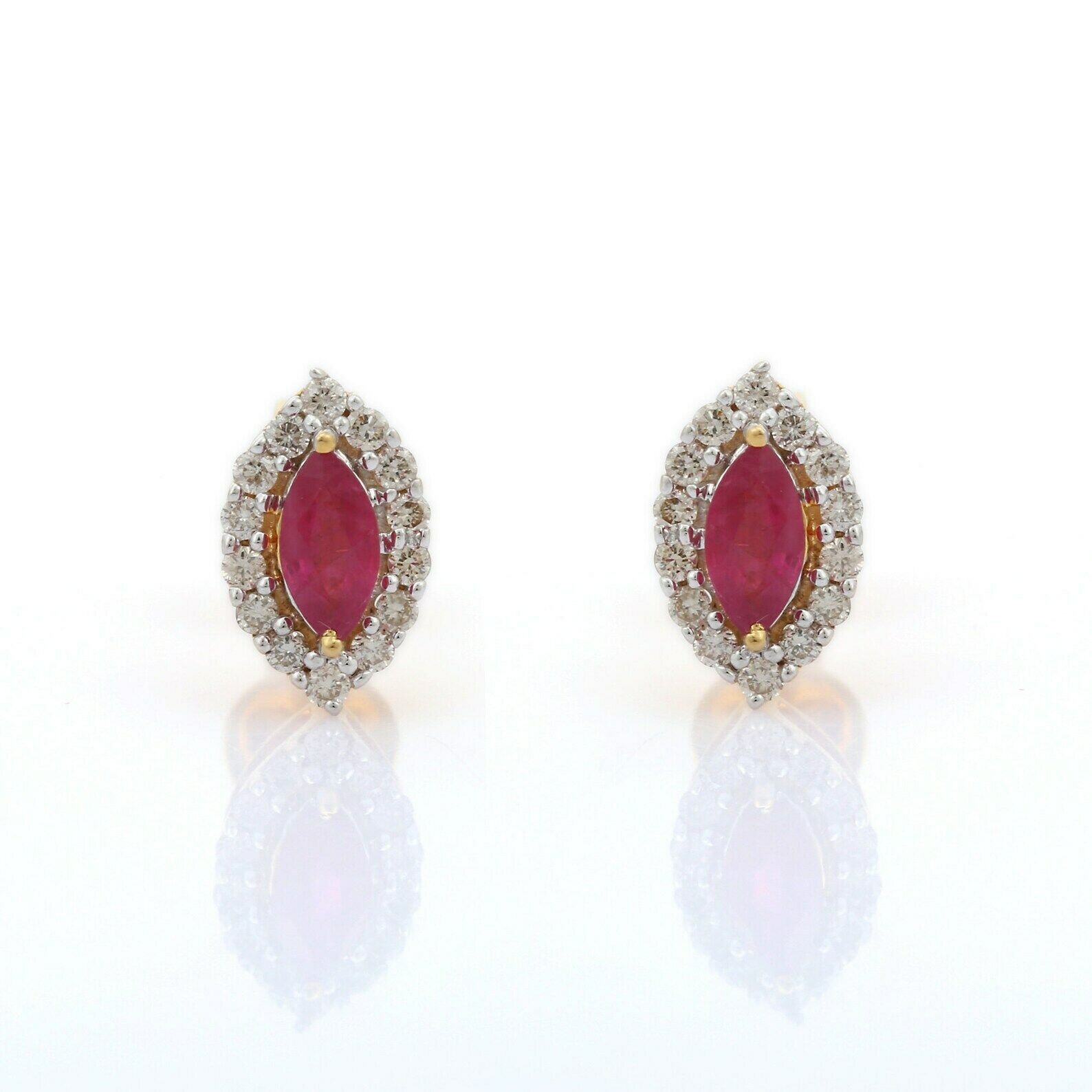 1.65ct Stud Earrings Marquise Cut Pink Ruby Halo 14k Yellow Gold Finish