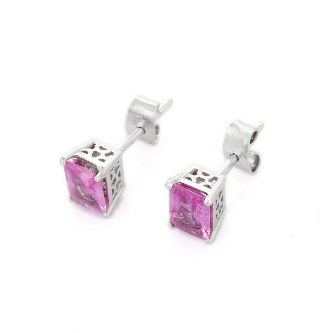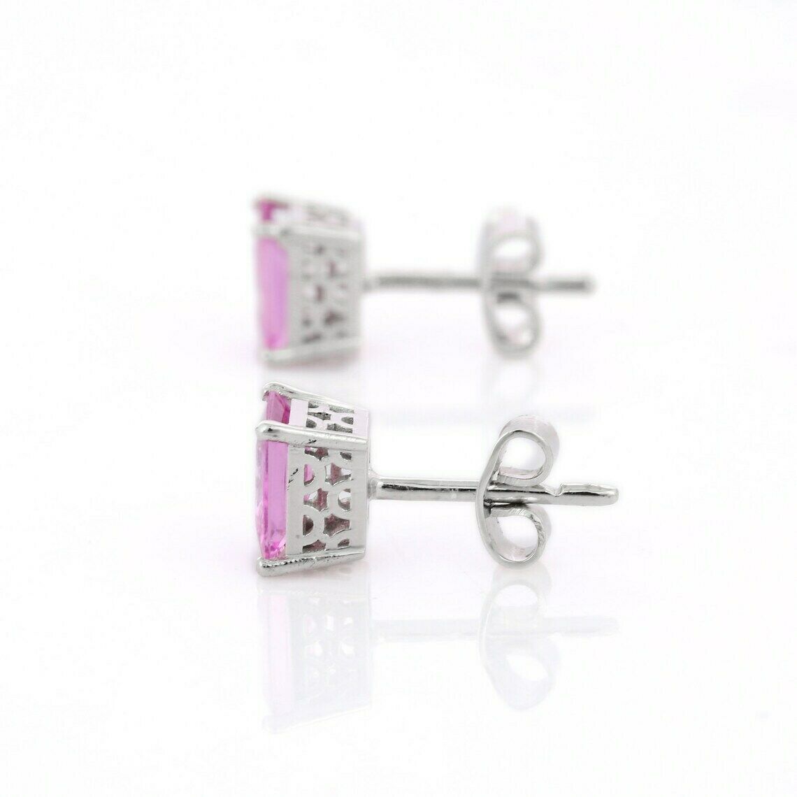 1.67ct Stud Earrings Emerald Cut Pink Sapphire Solitaire 14k White Gold Finish