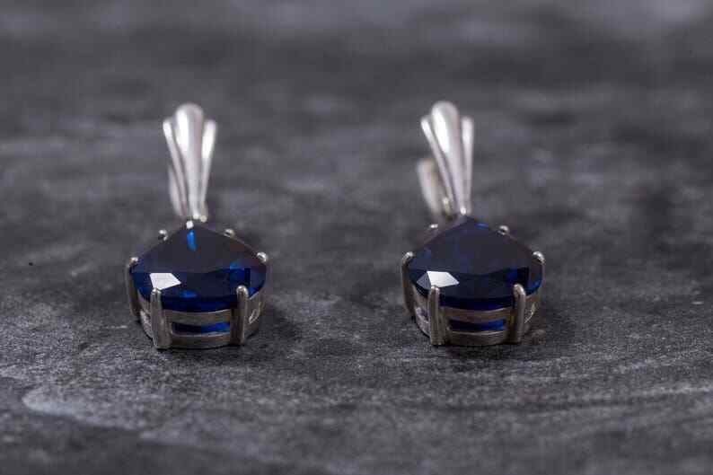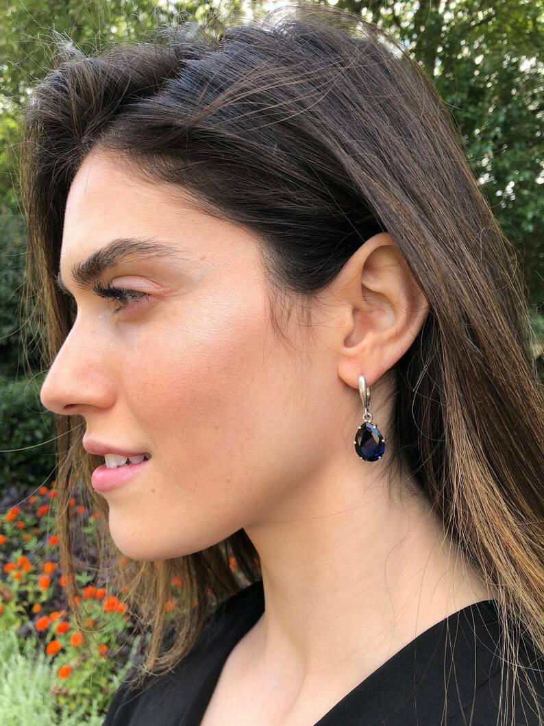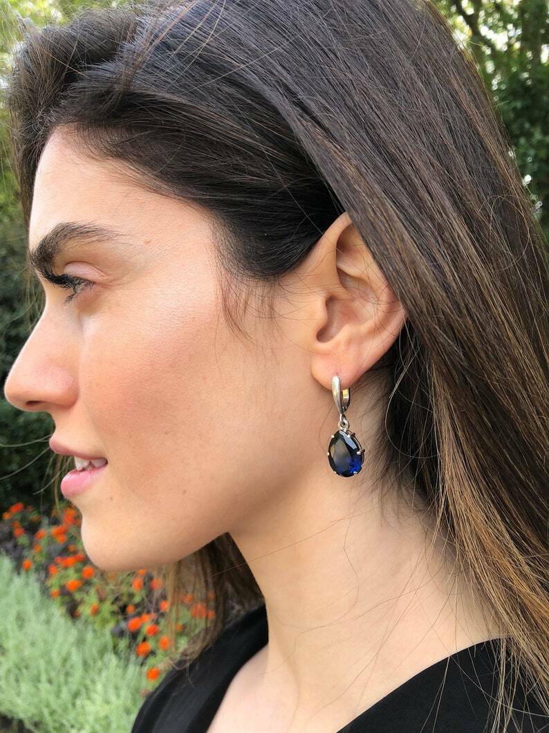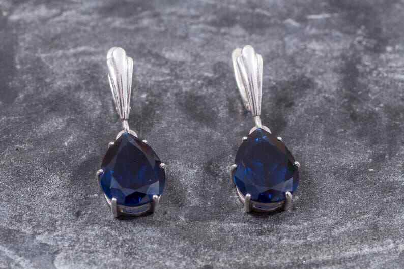1.6ct Drop Earrings Pear Cut Blue Sapphire Solitaire Design 14k White Gold Finish
