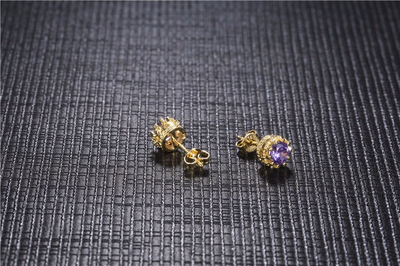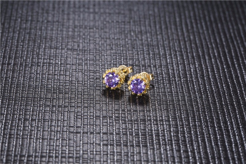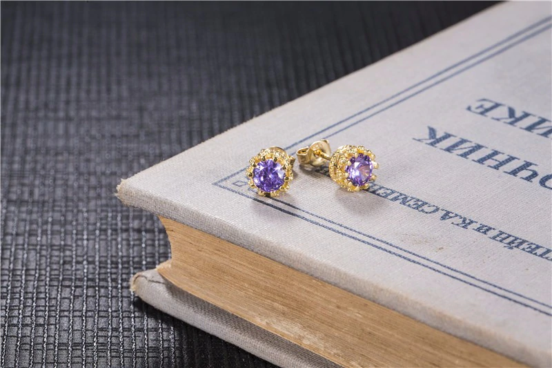1.6ct Round Purple Amethyst Crown Solitaire Stud Earrings 14k Yellow Gold Finish